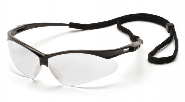 Built-in rubber nosepiece.Rubber temple tips.Ventilated, straight-back flexible temples.Includes black lanyard cord.