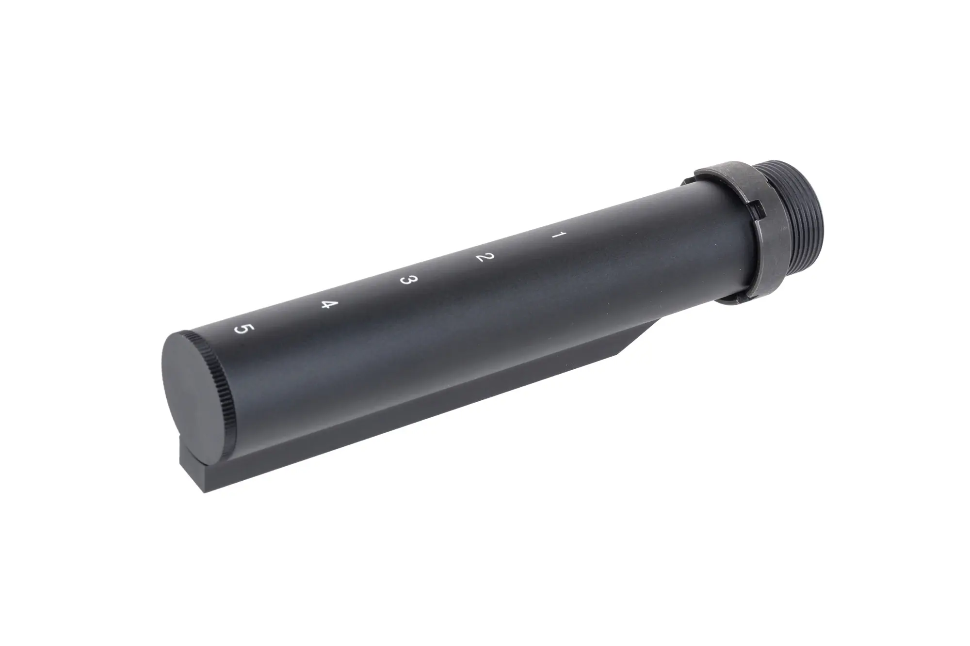 Aluminiowa prowadnica kolby od producenta 5KU do replik typu M4/M16. Prowadnica posiada 5 stopni regulacji, w zestawie dołączono śrubę, podkładkę oraz stalowy pierścień prowadnicy.