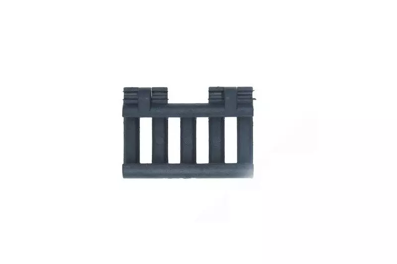 Wykonana z giętkiego tworzywa sztucznego okładzina szyny ris o długości 45mm. Dodatkowo została wyposażona w zaczepy pozwalające na unieruchomienie okablowania np przycisku żelowego latarki taktycznej.