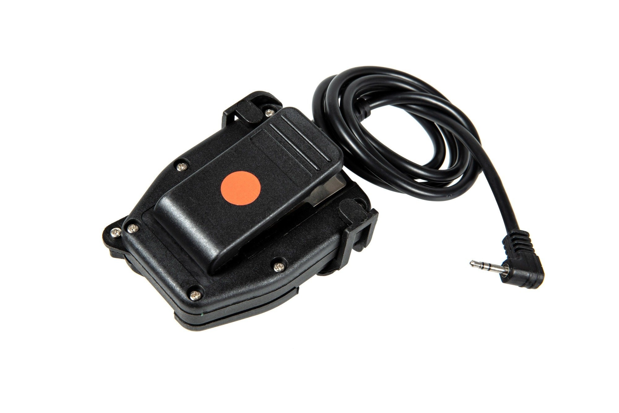 Wykonany z polimerowego tworzywa przycisk PTT typu zPeltor. Do oporządzenia mocowany przy użyciu rzepa lub dołączonego metalowego klipsa.