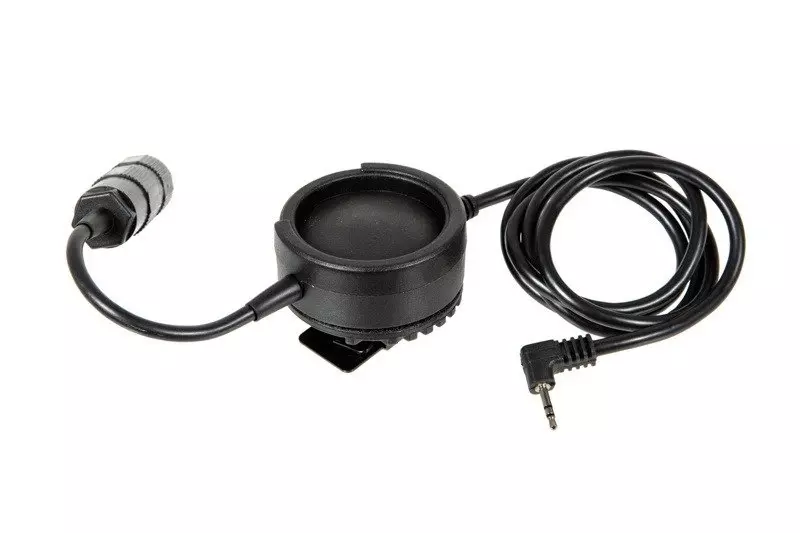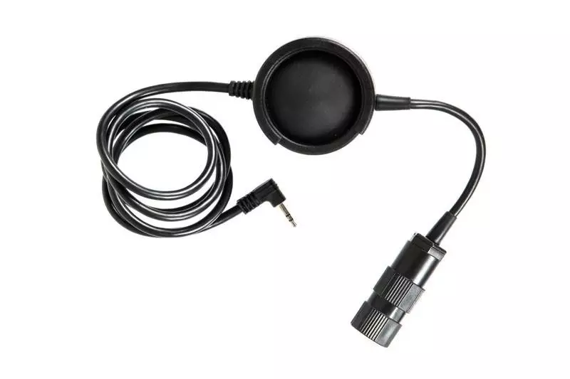 Przycisk PTT do zestawów słuchawkowych z wtykiem słuchawkowym typu Military. Przycisk mocowany jest do oporządzenia przez klips na rzep. Do jego produkcji użyto wzmacnianego tworzywa nylonowego, natomiast klips wykonany jest ze stali.