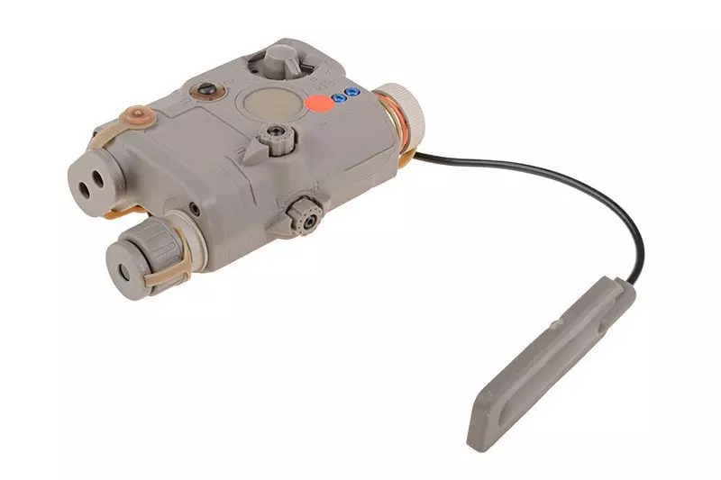Wykonana z mocnego tworzywa, w pełni funkcjonalna replika modułu AN/PEQ z filtrem podczerwieni (IR). Posiada laserowy wskaźnik celu oraz skuteczną latarkę z silnym strumieniem światła. Zasilanie stanową 2 baterie typu CR123 (brak w zestawie).