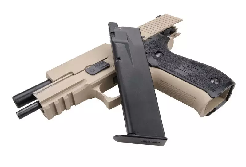 Replika gazowa pistoletu F226 MK25 wykonana została niemal w całości z metalu, za wyjątkiem okładzin chwytu pistoletowego wykonanych z tworzywa sztucznego. Zaopatrzony we frezowania zamek działa bardzo płynnie, zaś odciągnięcie kurka pozwala na skrócenie skoku spustu, dzięki czemu możliwe jest oddanie precyzyjnego, mierzonego strzału. Kurek przeładowanego pistoletu można bezpiecznie zwolnić za pomocą dźwigni znajdującej się po lewej stronie nad zwalniaczem magazynka.