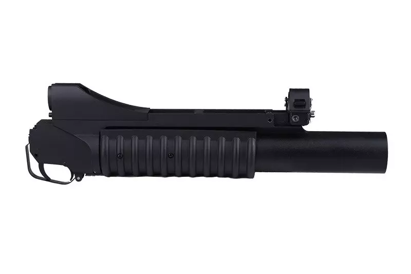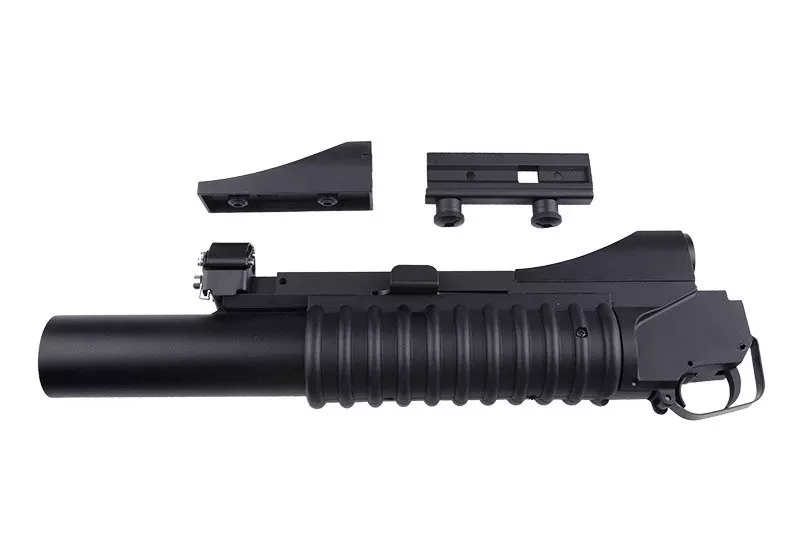 Wykonana w większości z metalu replika popularnego granatnika M203 w wersji Long. Airsoftowy odpowiednik tego granatnika jest zasilany z standardowych granatów 40mm (brak w zestawie) miotających kulki za pomocą gazu. Newralgiczne części narażone na zużycie zostały wykonane ze stali. Jedynym elementem wykonanym z tworzywa jest żebrowany chwyt granatnika.