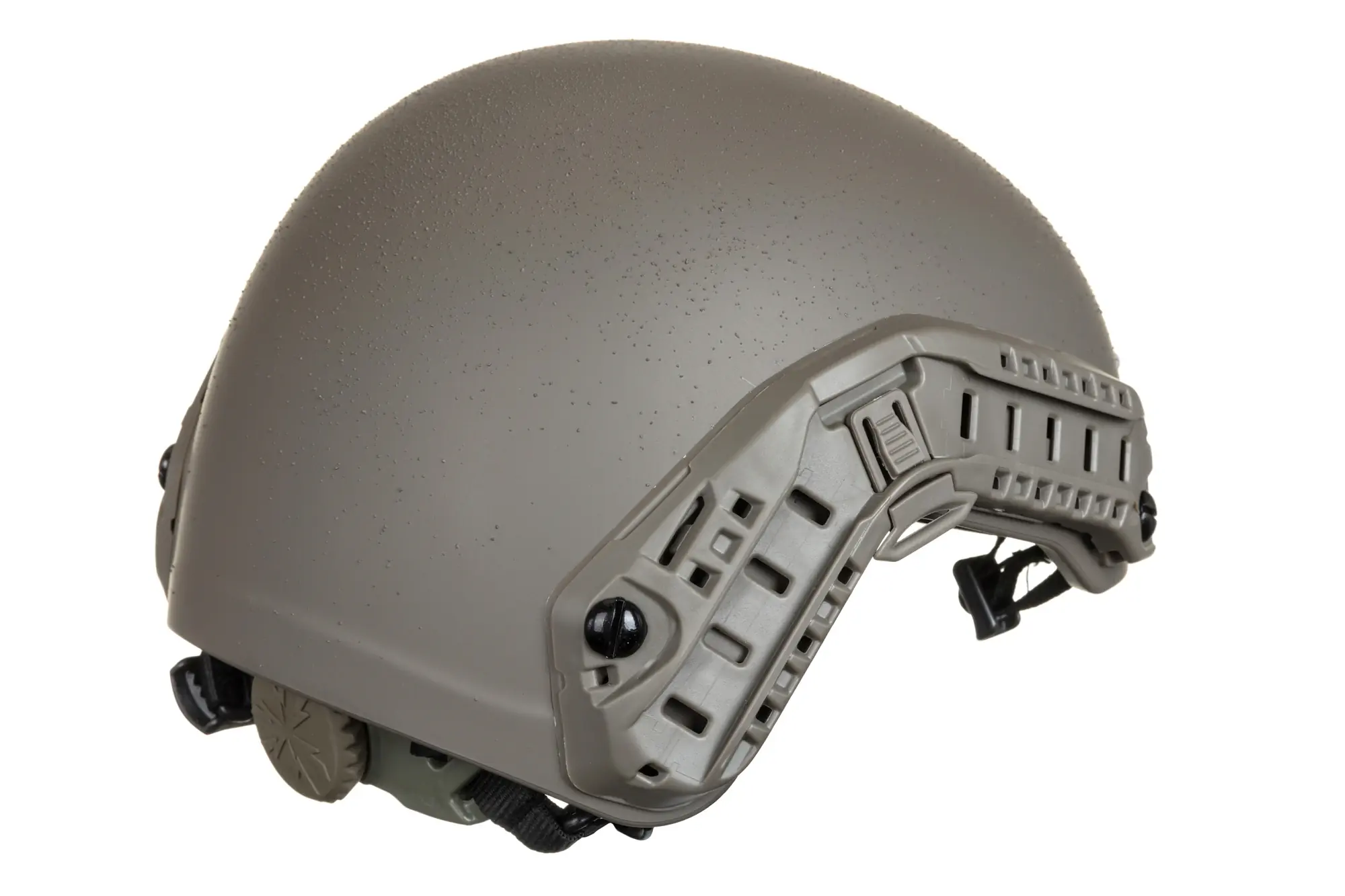 W zestawie dołączono boczne szyny, które umożliwią montaż dodatkowych akcesoriów takich jak latarka czy znaczniki. Hełm został wyposażony w szereg rzepów, które pozwolą na mocowanie naszywek typu morale-patch, oznaczeń, znaczników typu e-lite, etc.
