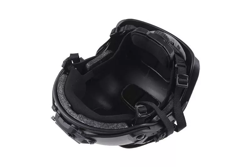 Replika kasku wykonana z tworzywa. Dzięki swojej niewielkiej wadze oraz przemyślanej konstrukcji jest bardzo wygodna w noszeniu. Znajdujące się wewnątrz gąbki powodują, iż kask jest stabilnie osadzony na głowie. Pozycję gąbek możemy dostosować do swoich preferencji, gdyż mocowane są przy pomocy rzepów. Szeroki zakres regulacji posiada 4-punktowy fasunek, zapinany na klamrę typu fastex. Dodatkowym atutem fasunku jest fakt, iż został wykonany w układzie zamkniętym, czyli nie posiada luźnych, odstających pasków regulujących.
