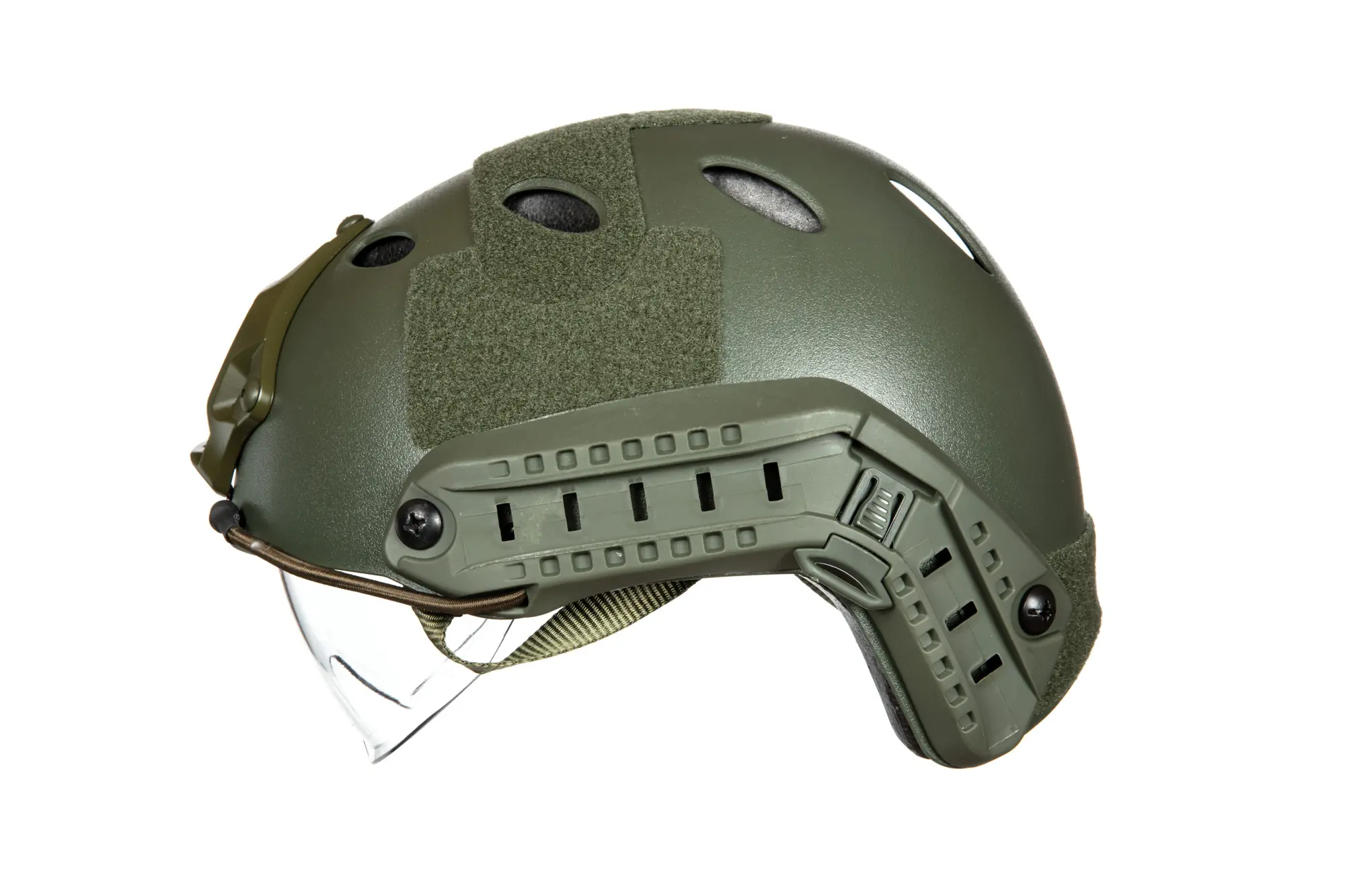 Współczynnik lansu z pewnością pomogą podnieść panele z miękkiego rzepa umieszczonym na kasku, pozwalające na mocowanie naszywek typu morale-patch, oznaczeń, znaczników typu e-lite, etc. Skorupa kasku typu PJ posiada dodatkowo otwory poprawiające wentylację oraz obniżające nieznacznie wagę.