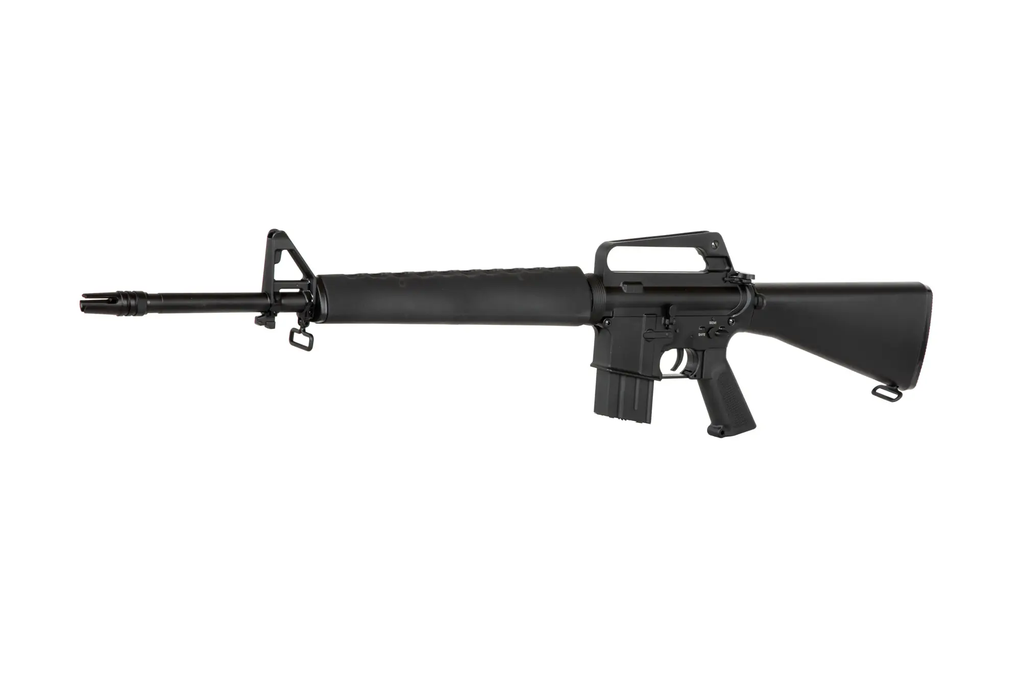 Działający bolt-catch ułatwia regulację systemu hop-up. Karabinek ASG Double Bell posiada system szybkiej wymiany sprężyny, dzięki któremu nie musimy rozkręcać szkieletu gearboxa aby dostosować prędkość wylotową do wymagań rozgrywki.
