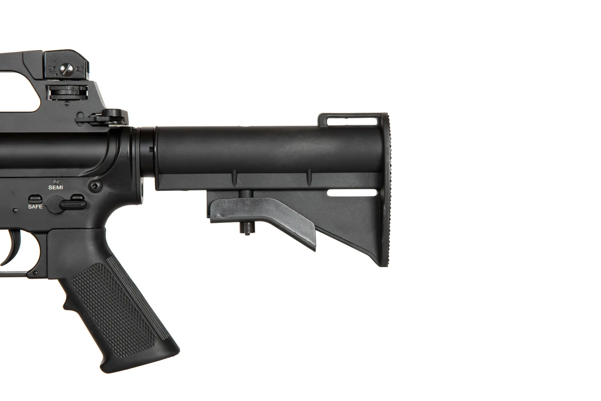 Replika posiada działający bolt-catch ułatwia regulację systemu hop-up. Karabinek ASG Double Bell wyposażony jest system szybkiej wymiany sprężyny, dzięki któremu nie musimy rozkręcać szkieletu gearboxa aby dostosować prędkość wylotową do wymagań rozgrywki.