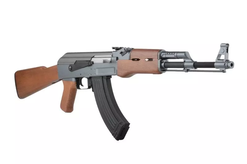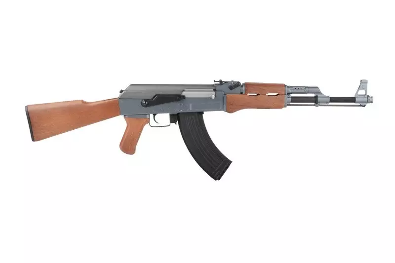 CyberGun produkuje repliki AK 47 na licencji producenta oryginału. Dzięki temu mogą korzystać z oryginalnej nazwy, a każda replika otrzymała indywidualny numer seryjny. Jest to budżetowa replika sławnego radzieckiego karabinka szturmowego, o korpusie wykonanym z tworzywa sztucznego, posiadająca realistycznie wyglądające imitacje elementów drewnianych i okładzin lufy. Replika w niczym nie ustępuje produktom konkurencji, a wiele z nich znacznie nawet przewyższa. Z metalu wykonane zostały lufa zewnętrzna, przyrządy celownicze, spust, zaczepy na zawieszenie taktyczne i pokrywa zamka.
