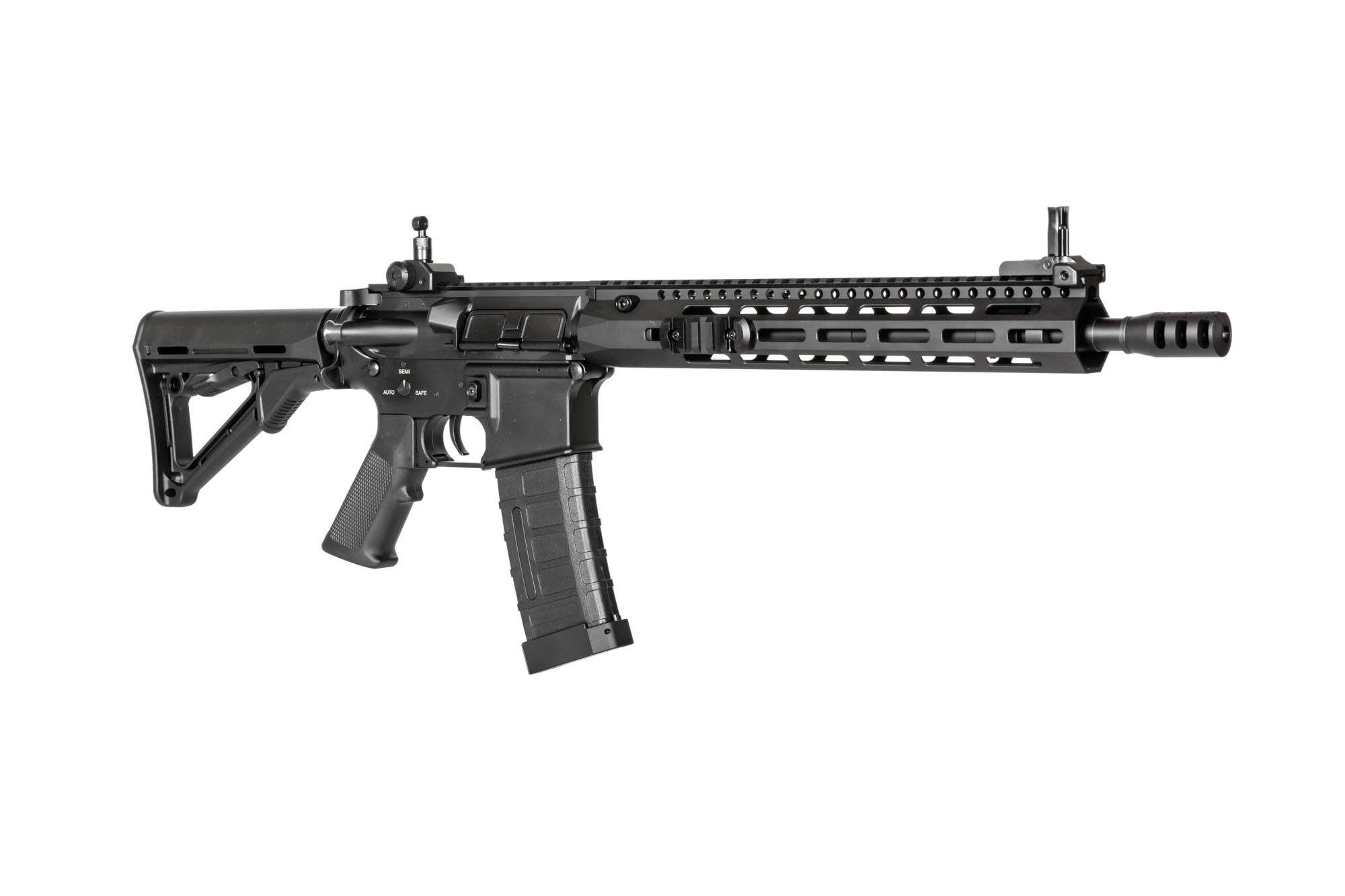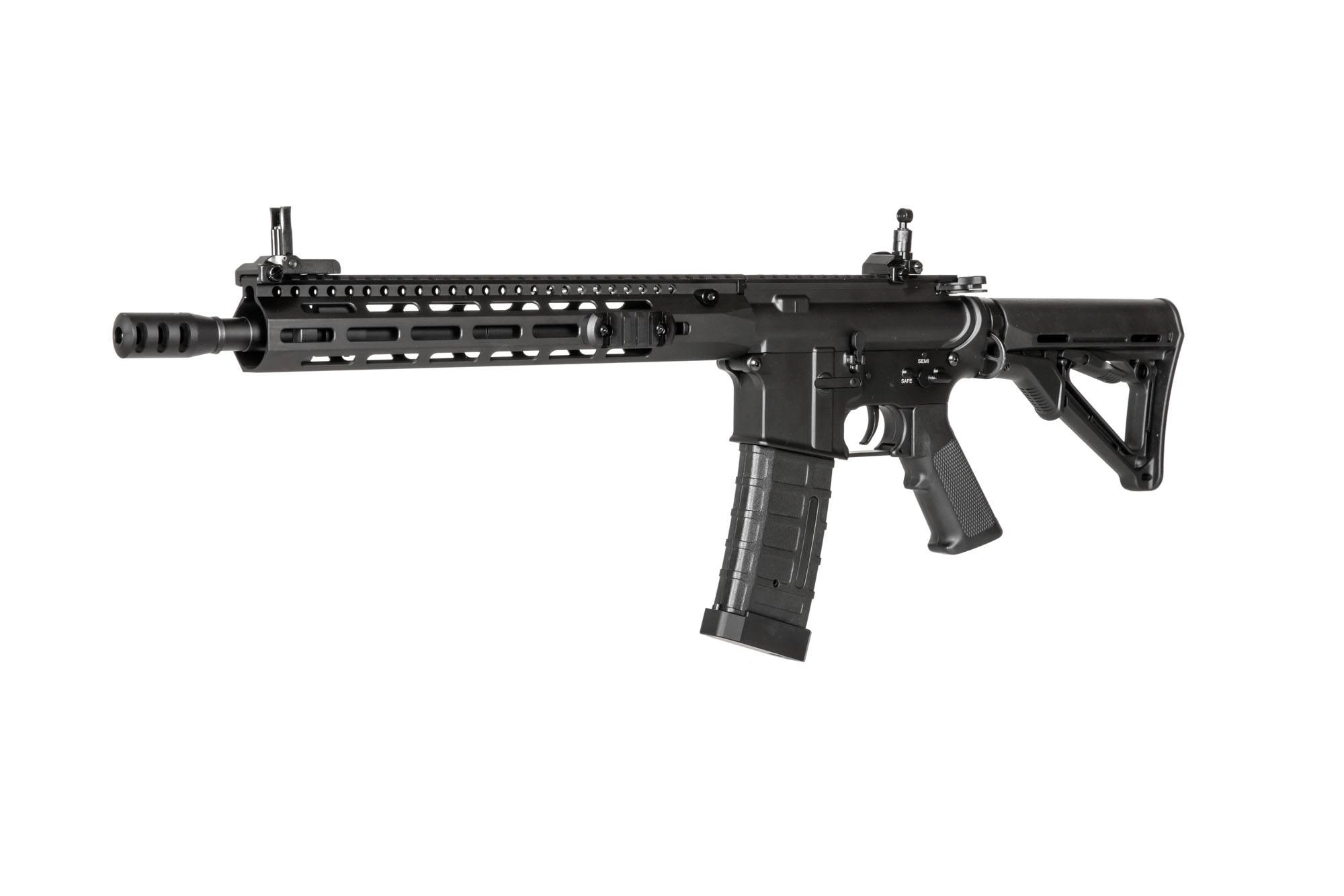 Górne body repliki wraz z górną częścią chwytu przedniego zabudowane są szyną RIS (22mm.) o łącznej długości 52CM, pozostała część chwytu przedniego została trzystronnie wyposażona w system MLOK pozwalając na montaż dodatkowych akcesoriów. Replika została stockowo wyposażona w precyzyjną lufę wewnętrzną o długości ~36 CM, średnicy 6.03 mm. Po zaciągnięciu dźwigni przeładowania uzyskujemy dostęp do systemu Hop-Up, umieszczonego pod pokrywą wyrzutnika łusek. Aby zamknąć pokrywę wystarczy użyć przycisku od działającego systemu Bolt Catch.