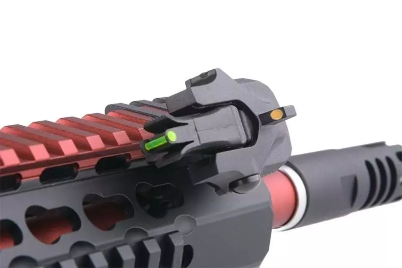 Długa, grzbietowa szyna RIS 22mm pozwala na montaż różnego typu celowników optycznych. W zestawie znajduje się komplet skośnych, mechanicznych przyrządów celowniczych Fiber Optic typu flip-up. Przyrządy te zasługują na szczególną uwagę – są zamocowane pod kątem, dzięki czemu nie będą kolidować z wykorzystywanymi jednocześnie celownikami optycznymi, pozwalają ponadto na oddawanie strzałów tak z wysokiego jak i niskiego profilu, dzięki możliwości ich ustawienia w dwóch pozycjach.