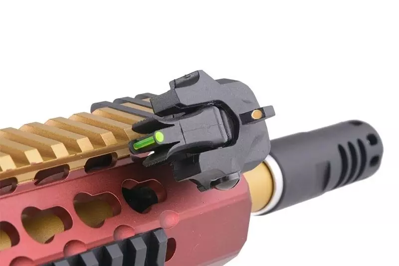 Długa, grzbietowa szyna RIS 22mm pozwala na montaż różnego typu celowników optycznych. W zestawie znajduje się komplet skośnych, mechanicznych przyrządów celowniczych Fiber Optic typu flip-up. Przyrządy te zasługują na szczególną uwagę – są zamocowane pod kątem, dzięki czemu nie będą kolidować z wykorzystywanymi jednocześnie celownikami optycznymi, pozwalają ponadto na oddawanie strzałów tak z wysokiego jak i niskiego profilu, dzięki możliwości ich ustawienia w dwóch pozycjach.