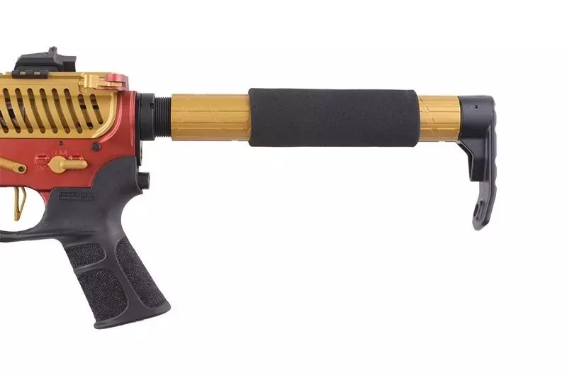Replika zaopatrzona jest w nietypową kolbę zawodniczą, wewnątrz której mieści się akumulator. Na froncie i tyle znajdują się miejsce na montaż zawieszenia typu QD. Karabinek został tez wyposażony w specjalnej konstrukcji, powiększoną rączkę przeładowania oraz chwyt pistoletowy Hakotsu.