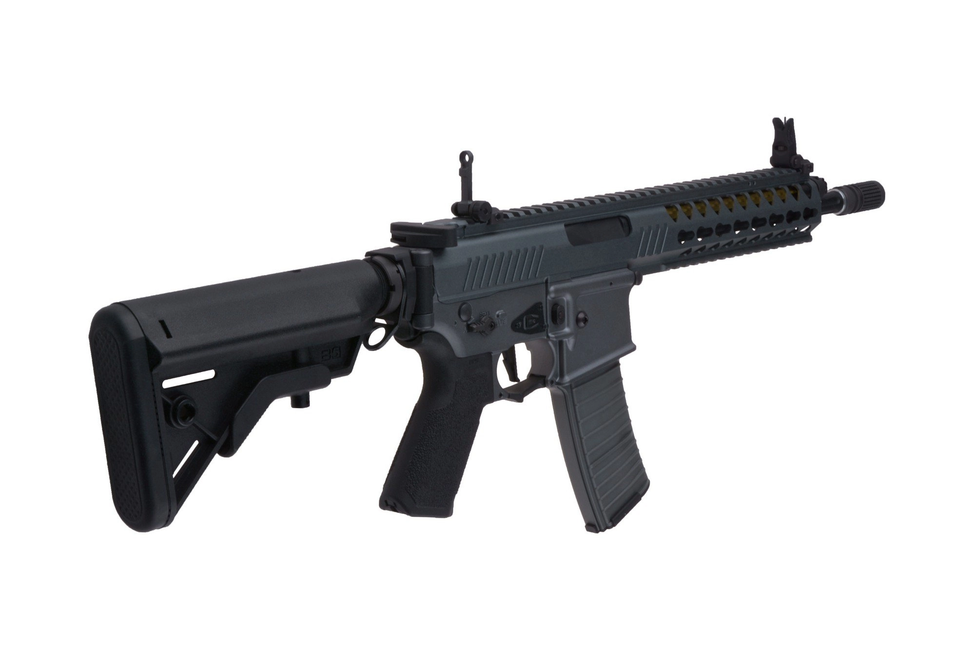 Replikę wyposażono w długą, grzbietową szynę montażową RIS 22mm oraz modułowy chwyt przedni w systemie KeyMod Rail System. Dzięki nim mamy możliwość zaopatrzenia karabinka w całą gamę akcesoriów dodatkowych, począwszy od optyki, przez chwyty i oświetlenie taktyczne, aż po laserowe wskaźniki celu.