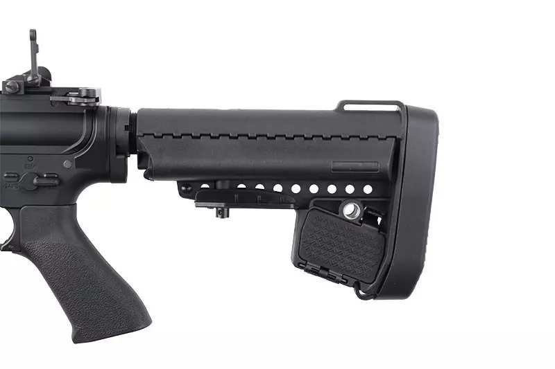 Replika zaopatrzona jest w wielopozycyjną, teleskopową kolbę typu EMOD – z grubą, gumową stopką, otworami do mocowania zawieszenia taktycznego QD oraz schowkiem na baterie lub inne drobne przedmioty. Na grzbiecie korpusu znajduje się szyna RIS 22mm ze składanymi przyrządami celowniczymi. Replika wyposażona jest także w chwyt przedni typu URX2 z możliwością zamocowania montażu zawieszenia QD. W zestawie znajduje się stalowy magazynek typu Hi-Cap mieszczący ok. 300 kulek.