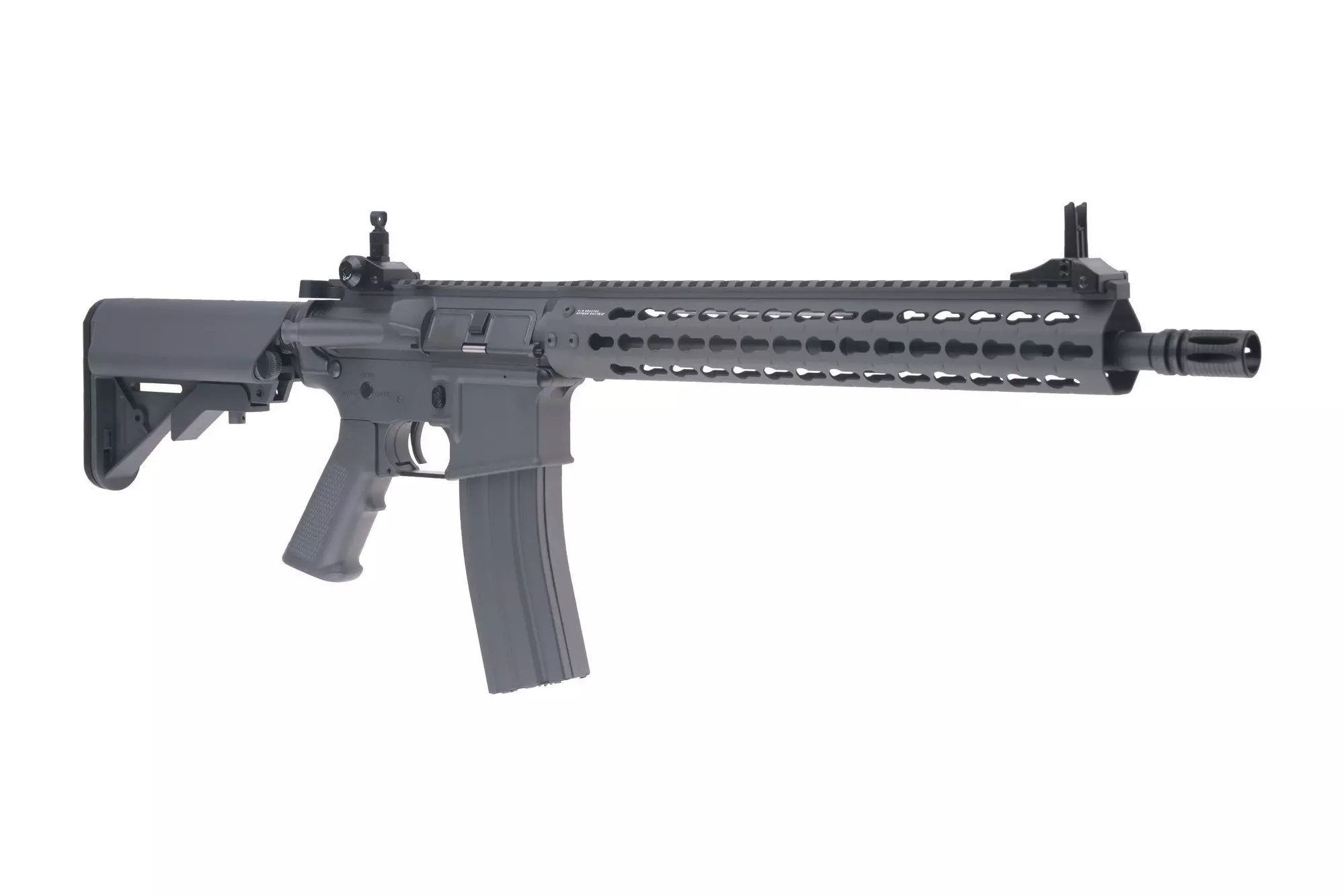 Replika idealnie nadaje się do prowadzenia działań na średnim dystansie, ze względu na prędkość wylotową rzędu ~390FPS. Zastosowana grzbietowa szyna RIS pozwala na przyłączenie dowolnego celowniczego urządzenia optycznego, zaś teleskopowa, mieszcząca akumulator kolba umożliwia przystosowanie repliki do indywidualnych preferencji użytkownika. W zestawie otrzymujemy komplet składanych, mechanicznych przyrządów celowniczych typu flip-up.