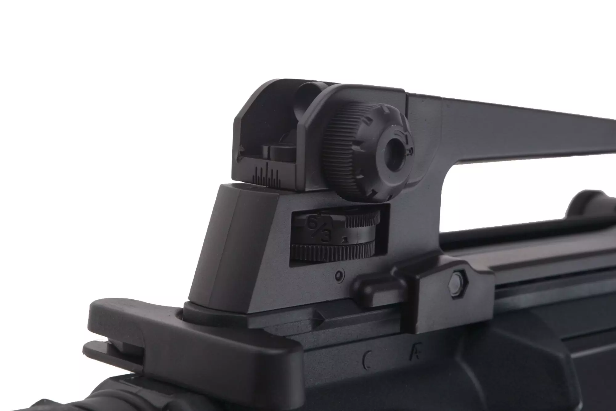 Karabinek posiada regulowany system hop-up, do którego możemy się dostać poprzez odciągnięcie dźwigni przeładowania, która otwiera klapkę wyrzutnika łusek kryjącego pokrętło regulacji.