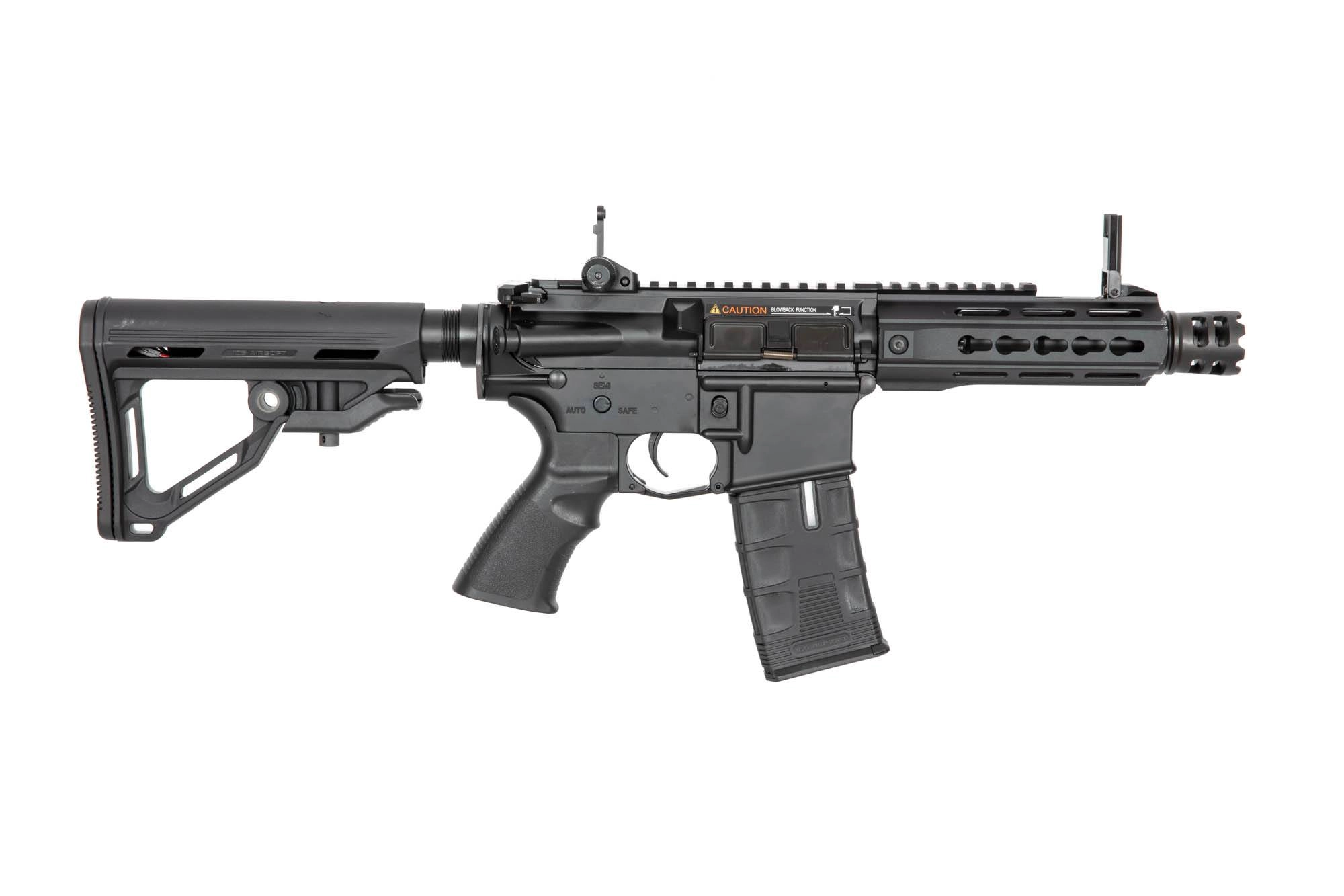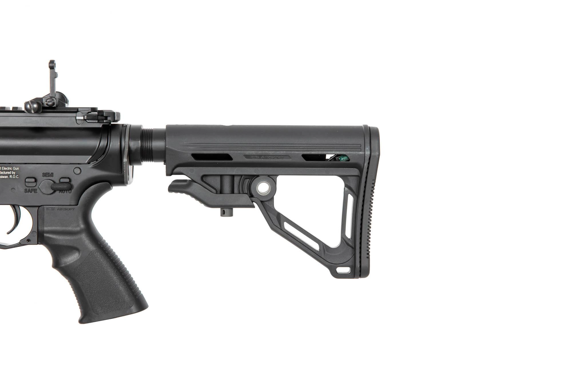 Replikę napędza dwudzielny ICS Split Gearbox V2 z fabrycznie zamontowaną sprężyną M120, systemem szybkiej wymiany sprężyny oraz kompletem wzmocnionych części. Karabinek posiada również realistyczny system imitacji odrzutu Electric Blow Back, który wprawia w ruch atrapę zamka zwiększając wrażenia z prowadzenia ognia.