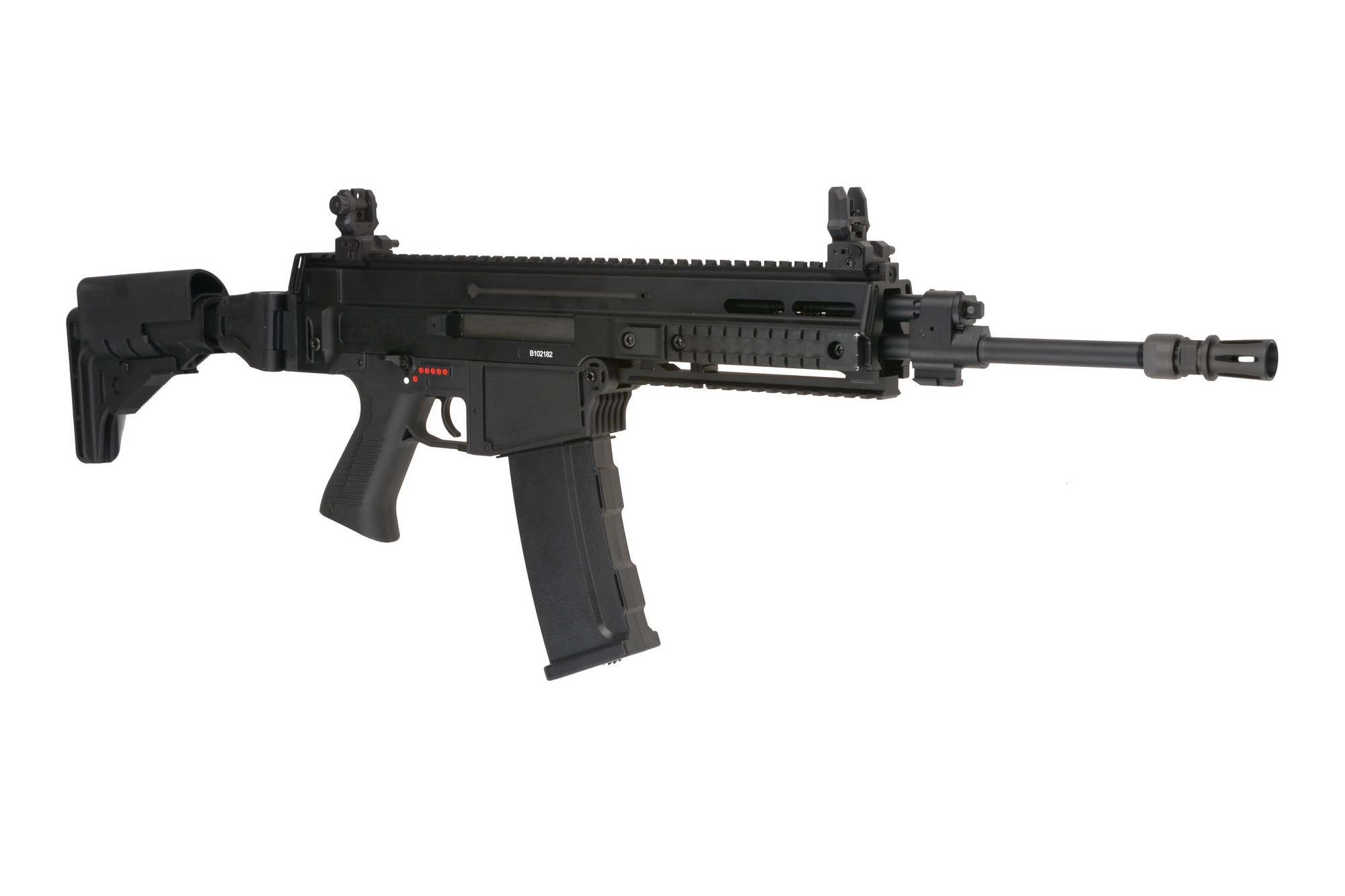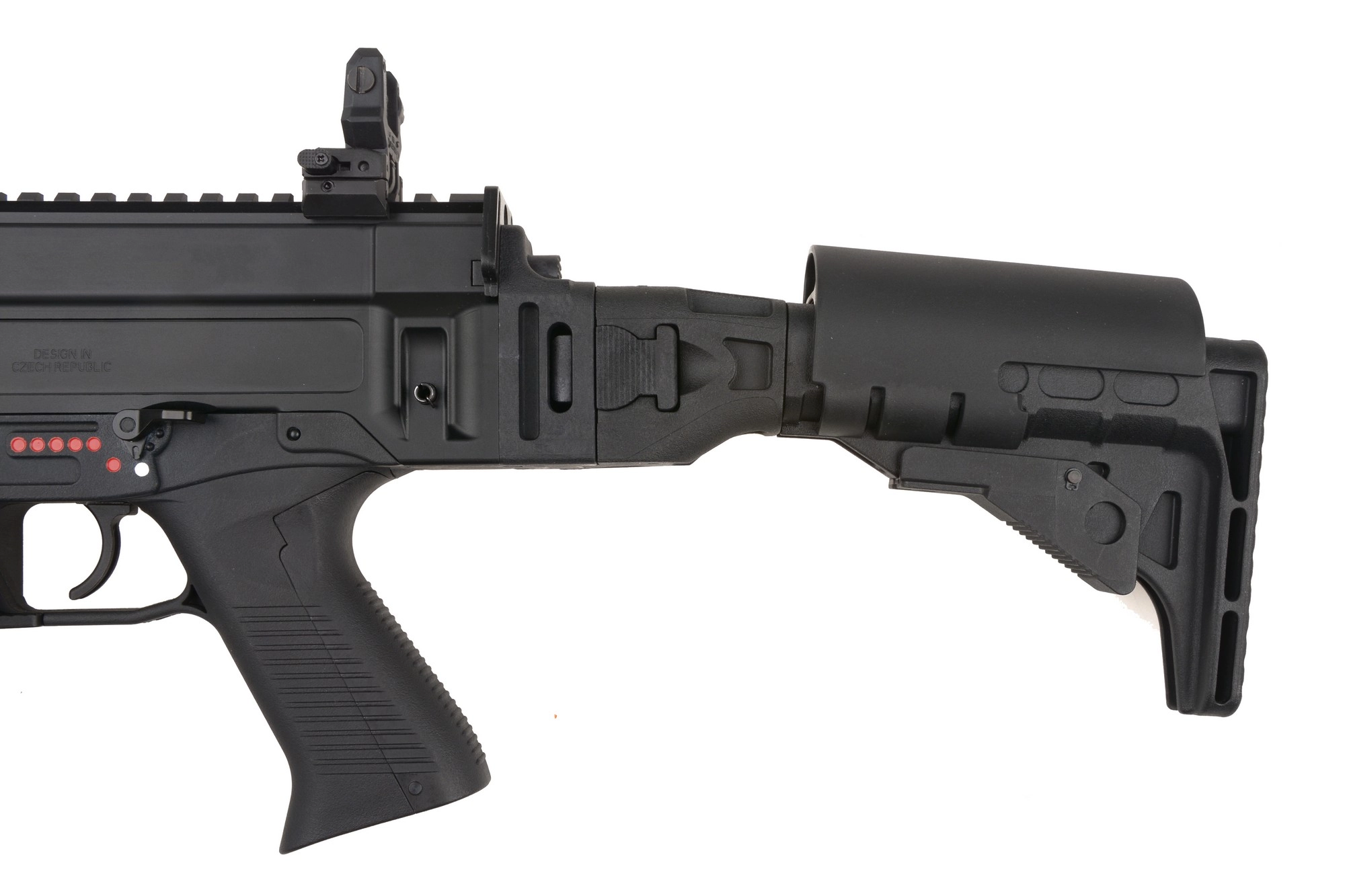 Wyjątkowo oryginalna replika karabinka CZ 805 BREN A1 wykonana na pełnej licencji firmy Česká zbrojovka a.s. przez ASG. Korpus karabinka wykonano z metalu, podobnie jak szyny montażowe, selektor ognia oraz lufę zewnętrzną. Dolną część korpusu składającą się z chwytu pistoletowego i gniazda magazynka wykonano z bardzo elastycznego polimeru o ciekawej, chropowatej fakturze. Podobnie ma się sprawa w przypadku kolby wraz z jej prowadnicą. Do wytworzenia elementów spajających replikę, takich jak śruby i piny a także tłumika płomienia oraz pokrywy wyrzutnika zamka, producent użył stali co jest zawsze mile widzianym dodatkiem.