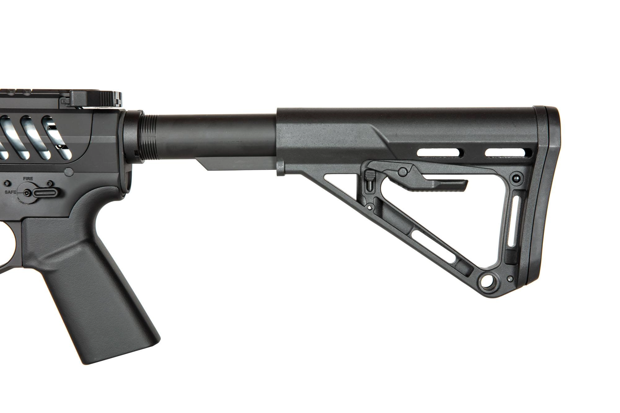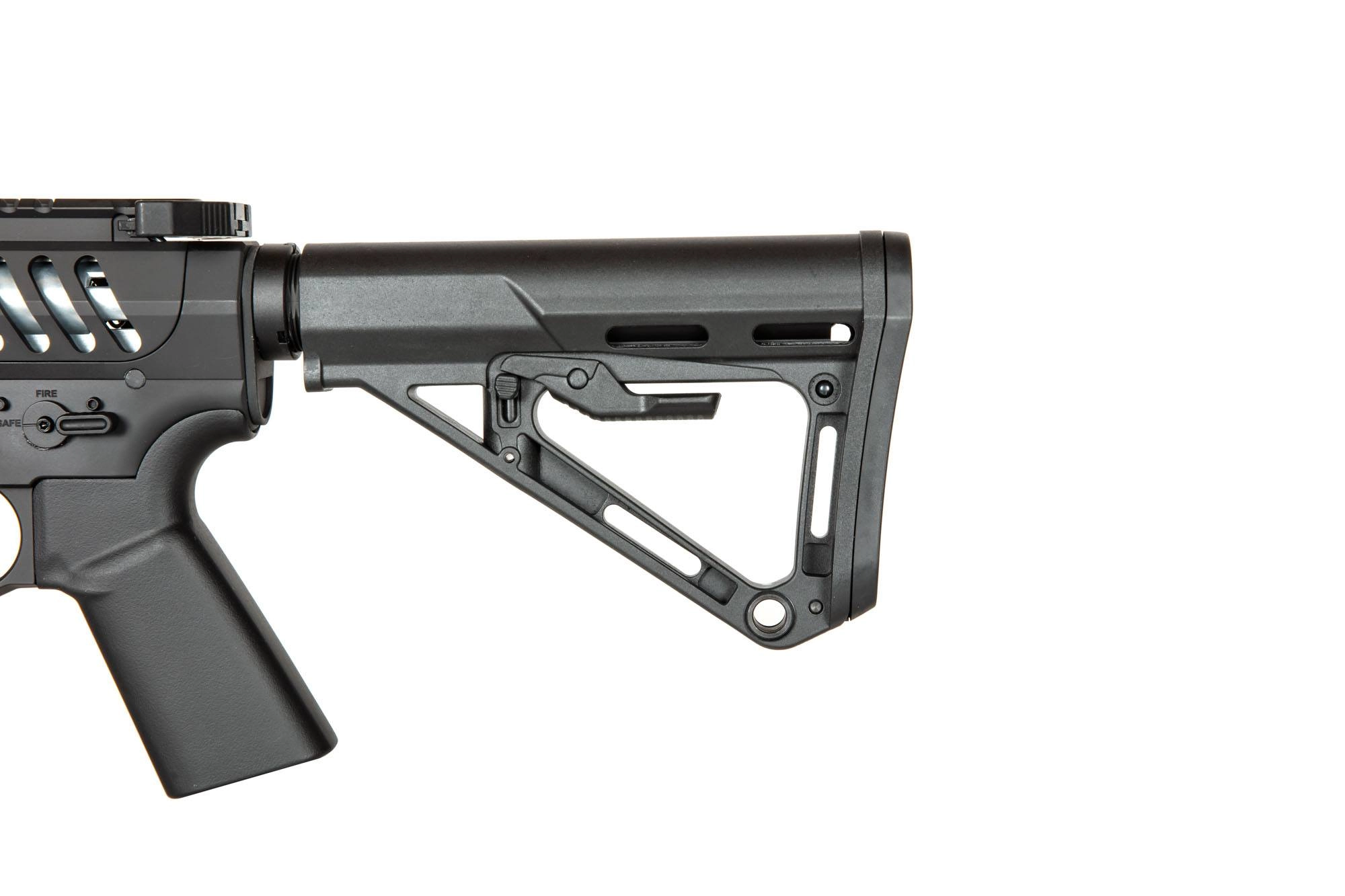 Replika została wykonana w większości z wysokiej jakości stopu aluminium – cały korpus, lufa zewnętrzna, prowadnica kolby, etc. Z mocnego tworzywa wytworzono jedynie kolbę oraz chwyt pistoletowy. Jest to teleskopowa kolba RS-3, 5-pozycyjna – można wyregulować jej długość, by dostosować replikę do budowy i preferencji strzelca, miejsce na baterię znajduje się wewnątrz prowadnicy kolby.