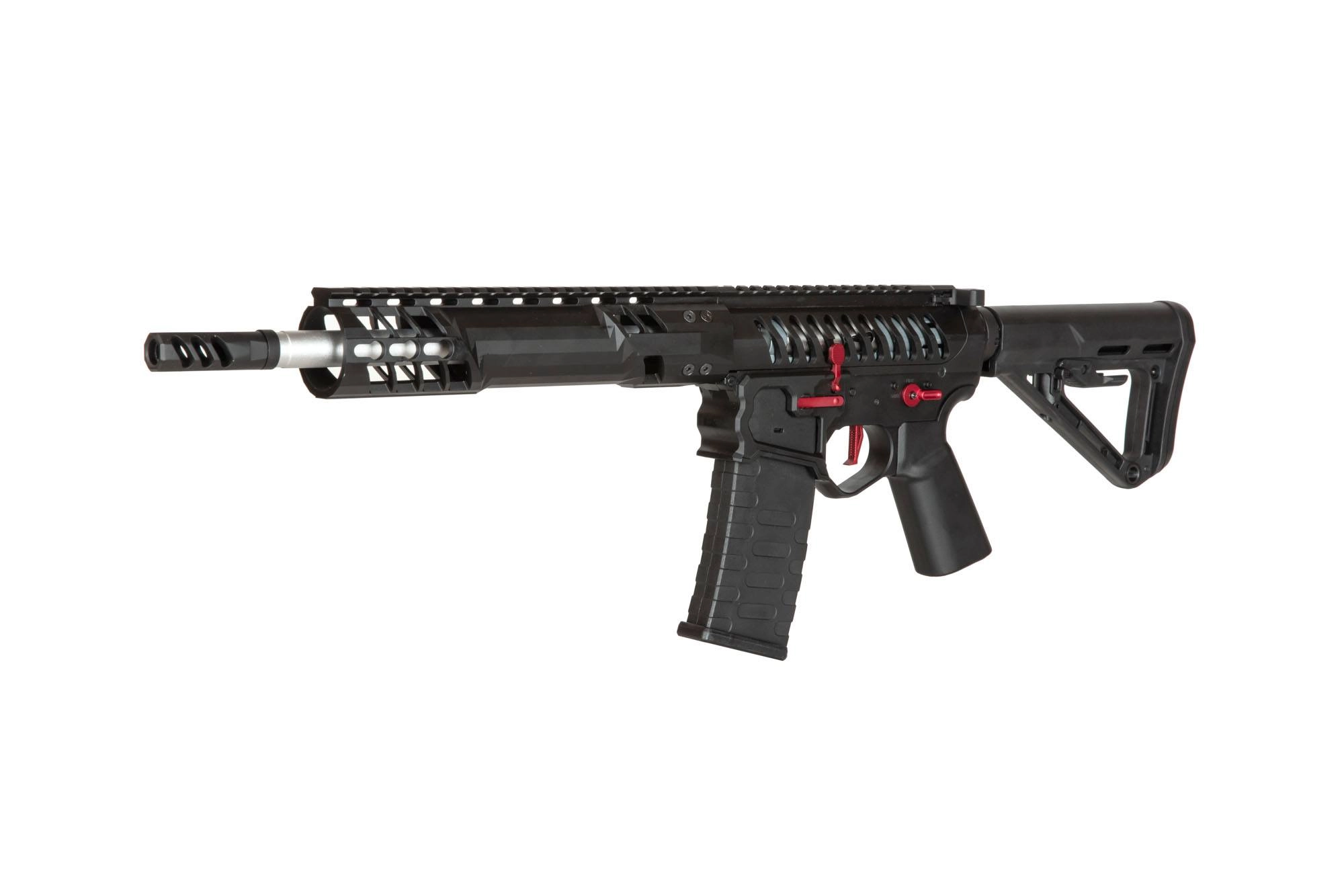Szkieletowy korpus repliki zmniejsza jej wagę całkowitą oraz dodaje agresywnego wyglądu. Powiększona rączka przeładowania, customowy język spustowy typu high-speed czy powiększona osłona spustu pozwalają na łatwiejsze operowanie repliką. Dodatkowo dla wygody użytkowania manipulatory zostały zdublowane po obu stronach repliki, które zostały pomalowane na czerwono. Lufa zewnętrzna została zakończona 14mm, lewoskrętnym gwintem, na którym osadzono hamulec wylotowy CMB.
