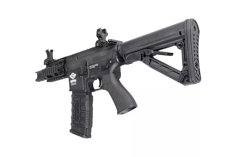 Replika posiada teleskopową kolbę GOS-V2 z wbudowanym schowkiem oraz gniazdami do montażu uchwytów zawieszenia taktycznego QD. Kolba jest regulowana, dzięki czemu można dostosować długość karabinka do budowy i preferencji strzelca. W zestawie otrzymujemy komplet mechanicznych, składanych przyrządów celowniczych typu flip-up.