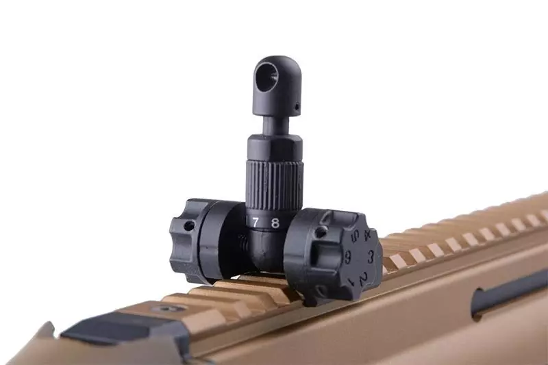 Umieszczona na grzbiecie korpusu oraz w dolnej części i po bokach repliki szyna montażowa systemu RIS 22mm pozwala na montaż dodatkowych akcesoriów jak chwyty taktyczne, latarki czy celowniki optyczne. Dostęp do regulowanej komory Hop-Up następuje po odsunięciu stalowej rączki przeładowania. Dostęp do wtyczki akumulatora znajduje się w kolbie, należy wybić pin trzymający gumową stopkę kolby.