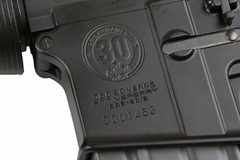 Replika posiada teleskopową kolbę GOS-V2 z wbudowanym schowkiem oraz gniazdami do montażu uchwytów zawieszenia taktycznego QD. Kolba jest regulowana, dzięki czemu można dostosować długość karabinka do budowy i preferencji strzelca. W zestawie otrzymujemy komplet metalowych, mechanicznych przyrządów celowniczych ze składanym przeziernikiem typu flip-up. Korpus repliki ozdobiono specjalnymi oznaczeniami G&G 30th Anniversary.