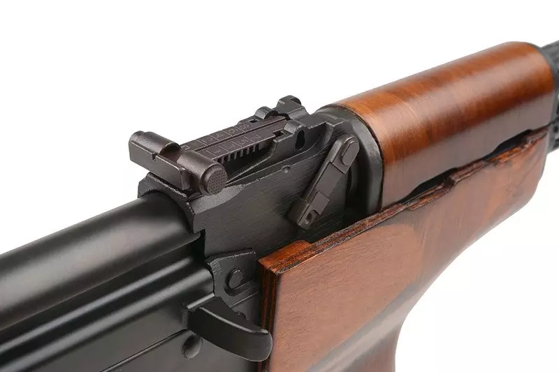 Dostęp do dźwigni regulacji systemu Hop-Up uzyskujemy klasycznie – po odciągnięciu rączki przeładowania. Z prawej strony korpusu znajduje się skrzydełkowy selektor trybu ognia wraz z bezpiecznikiem.