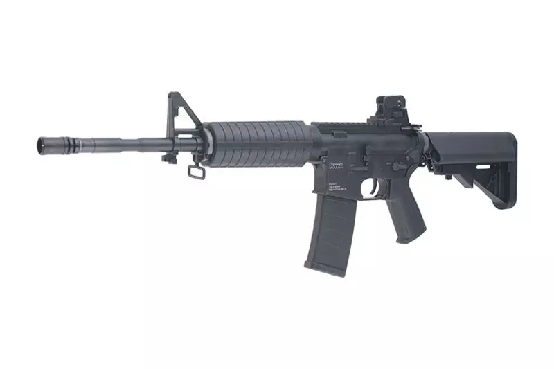 Replika karabinka szturmowego w wersji RM4A1. Replika karabinka niemalże cała wykonana została zgodnie z palnym odpowiednikiem – z metalu wykonano więc korpus, spust wraz z osłoną, lufę zewnętrzną, zatrzask magazynka, selektor ognia, dźwignię przeładowania, bolt catch oraz uchwyty zawieszenia. Z polimeru wykonana została kolba, chwyt pistoletowy i chwyt przedni.