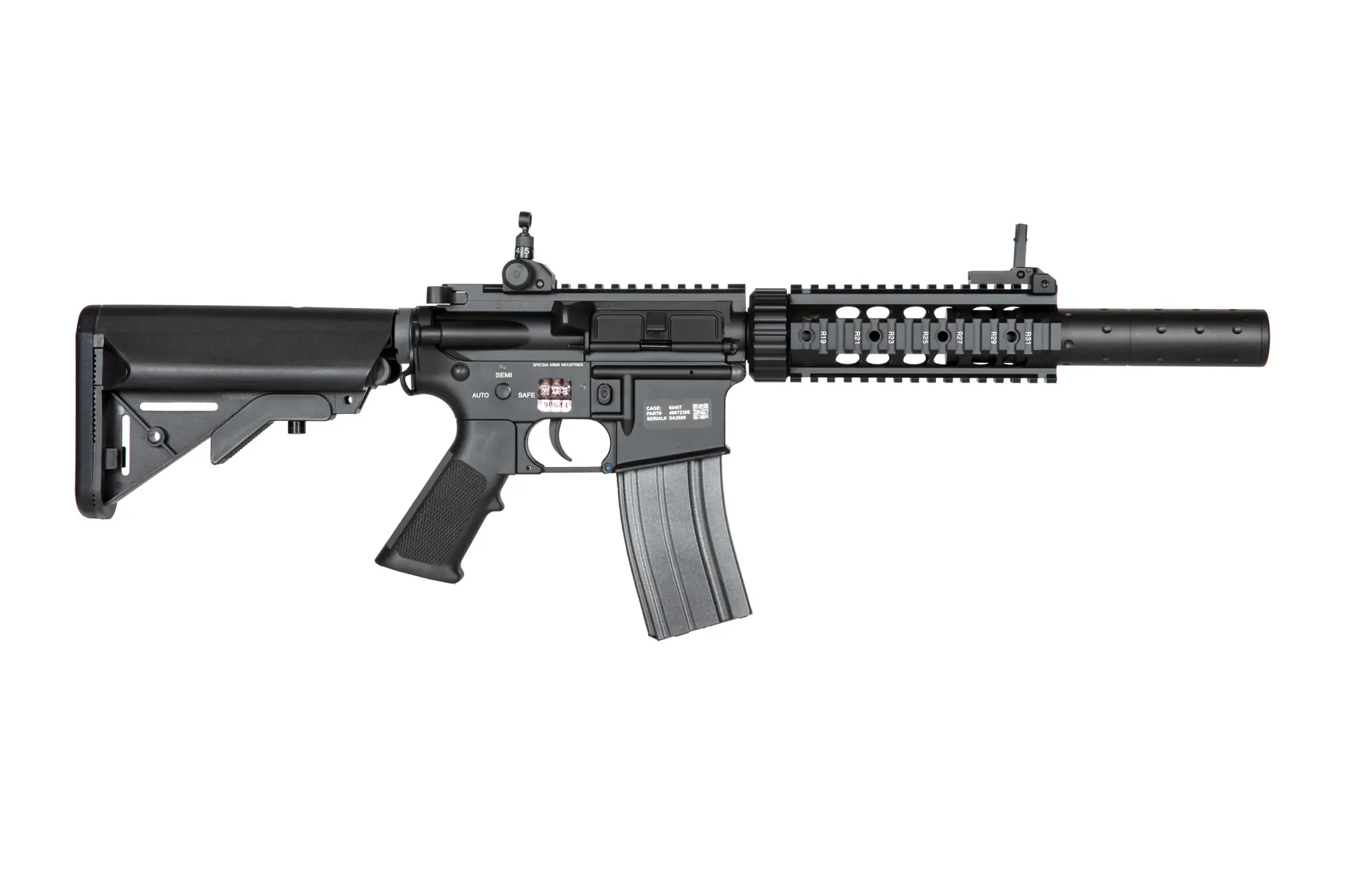 Replika wyposażona została w grzbietową szynę RIS 22 mm, zespół frontowych szyn RIS oraz regulowaną kolbę. Na górnej szynie RIS założone zostały metalowe przyrządy przeziernikowe typu flip-up, mogą one jednak swobodnie być zastąpione przez dowolne optoelektroniczne urządzenie celownicze. Dzięki rozsuwanej kolbie zakończonej stopką o antypoślizgowej fakturze, możliwe jest dostosowanie długości repliki do budowy oraz preferencji strzelca. Jest to wersja ze skróconą lufą, posiadająca integralny tłumik dźwięku. Tłumik częściowo chowa się pod chwytem przednim, dzięki czemu całość tworzy bardzo zwartą konstrukcję.