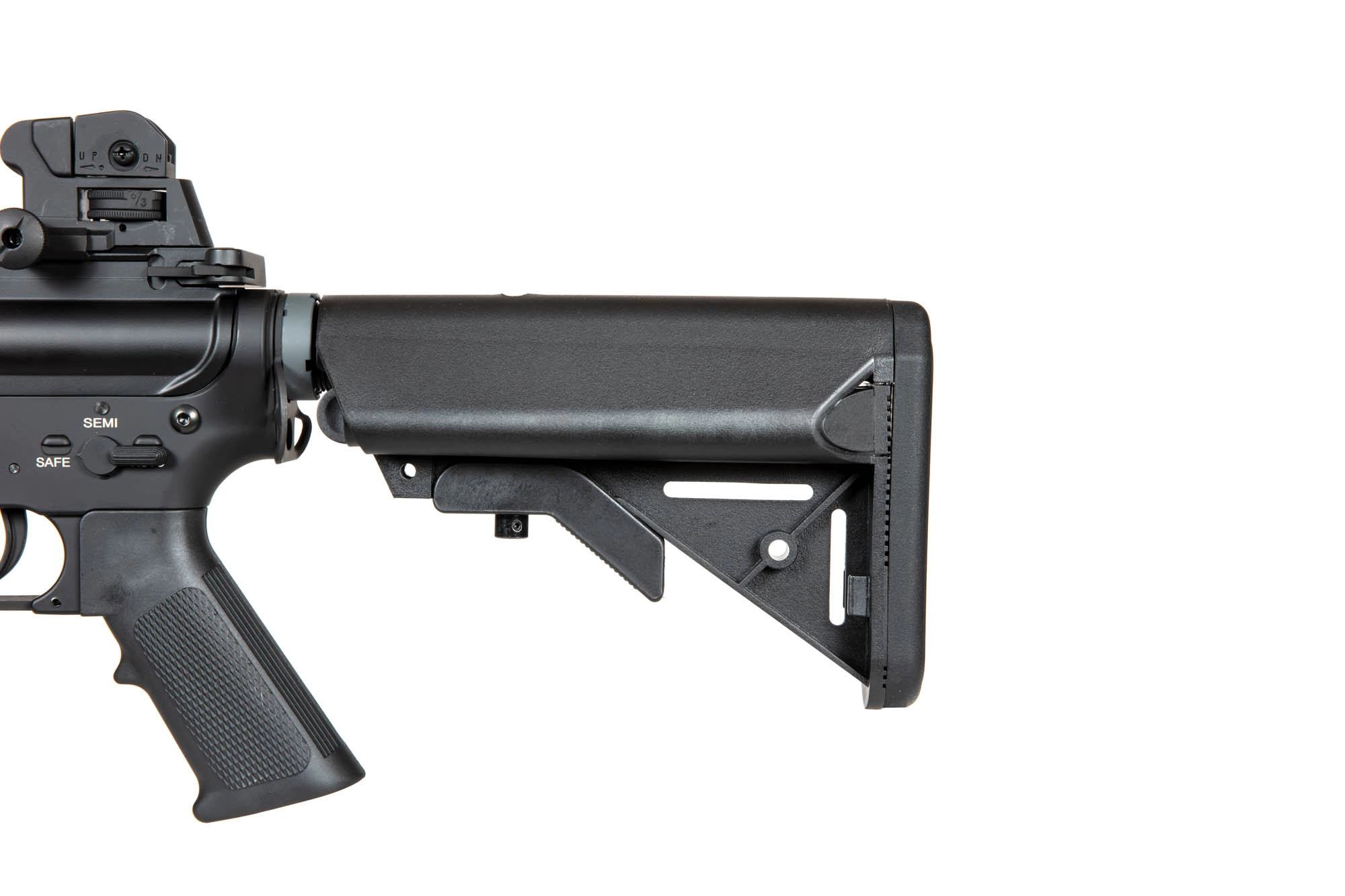 Replika wyposażona została w grzbietową szynę RIS 22 mm, zespół frontowych szyn RIS typu Free Float oraz regulowaną kolbę. Na górnej szynie RIS założone zostały metalowe przyrządy celownicze typu flip-up, mogą one jednak swobodnie być zastąpione przez dowolne optoelektroniczne urządzenie celownicze. Dzięki rozsuwanej kolbie zakończonej stopką o antypoślizgowej fakturze, możliwe jest dostosowanie długości repliki do budowy oraz preferencji strzelca. Standardowy tłumik płomienia osadzony został na 14-milimetrowym lewoskrętnym gwincie, co umożliwia przyłączenie w jego miejsce tłumika dźwięku.