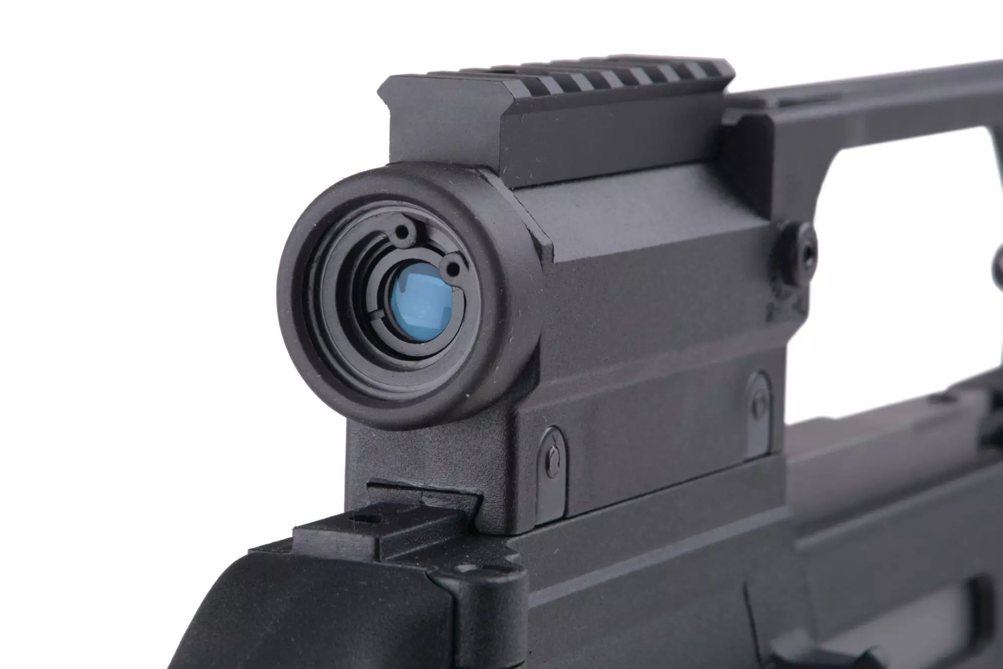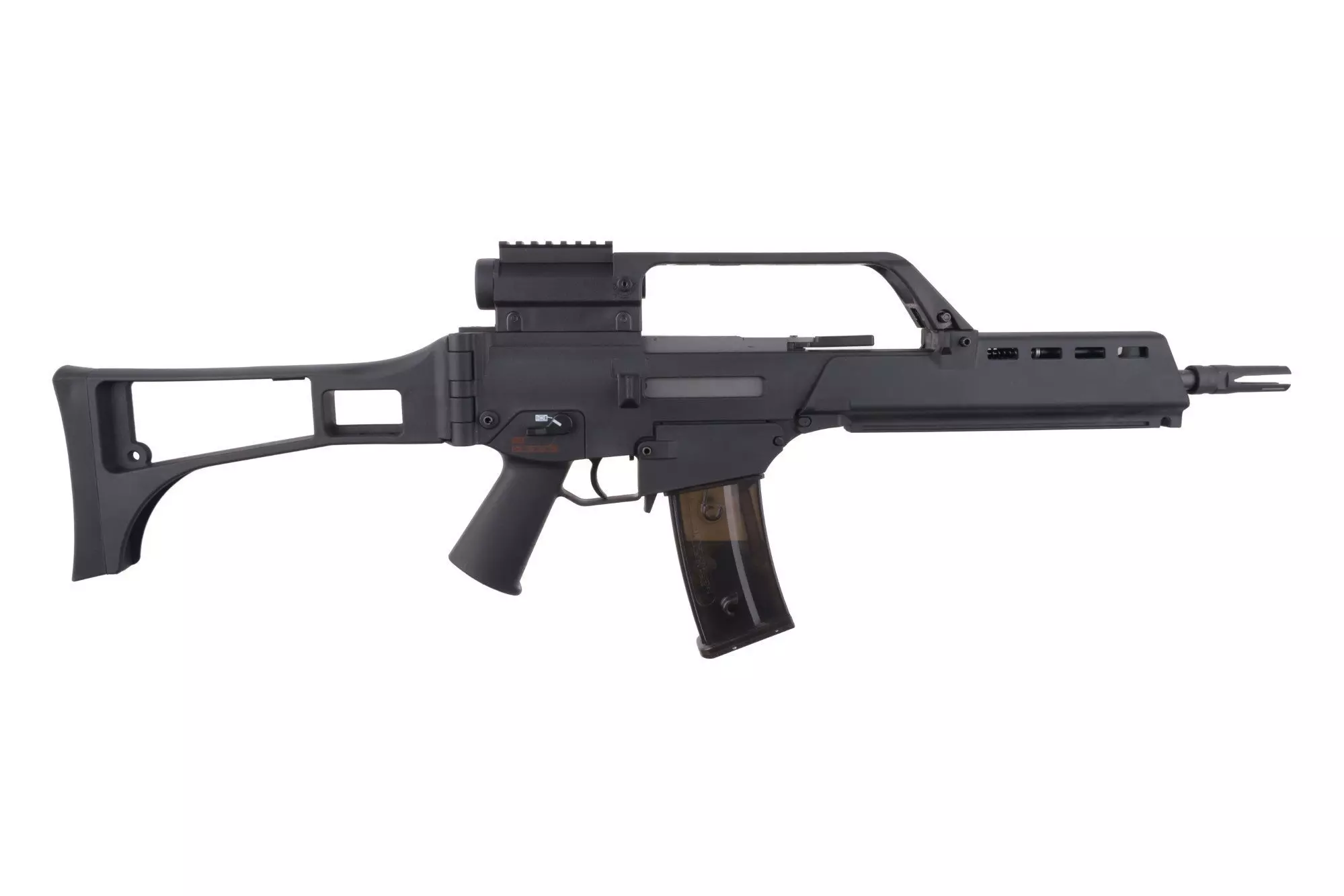 Replikę charakteryzuje bardzo dobre spasowanie, wykonano ją z przyjemnego dla oka matowego polimeru. Ważniejsze elementy połączono pinami, w ten sposób możemy zmieniać poszczególne elementy jak chociażby gniazdo magazynków. Wykonany z solidnego polimeru korpus repliki posiada indywidualny numer seryjny, oznaczenia producenta oraz estetyczne oznaczenia selektora ognia. Na grzbiecie repliki prócz klasycznego chwytu transportowego znajdziemy lunetę o stałym powiększeniu 1,5x. Replika posiada składaną na bok kolbę co ułatwi transport a także operowanie w ciasnych pomieszczeniach budynków. Metalową lufę repliki zakończono tłumikiem płomienia osadzonym na gwincie 14mm CW