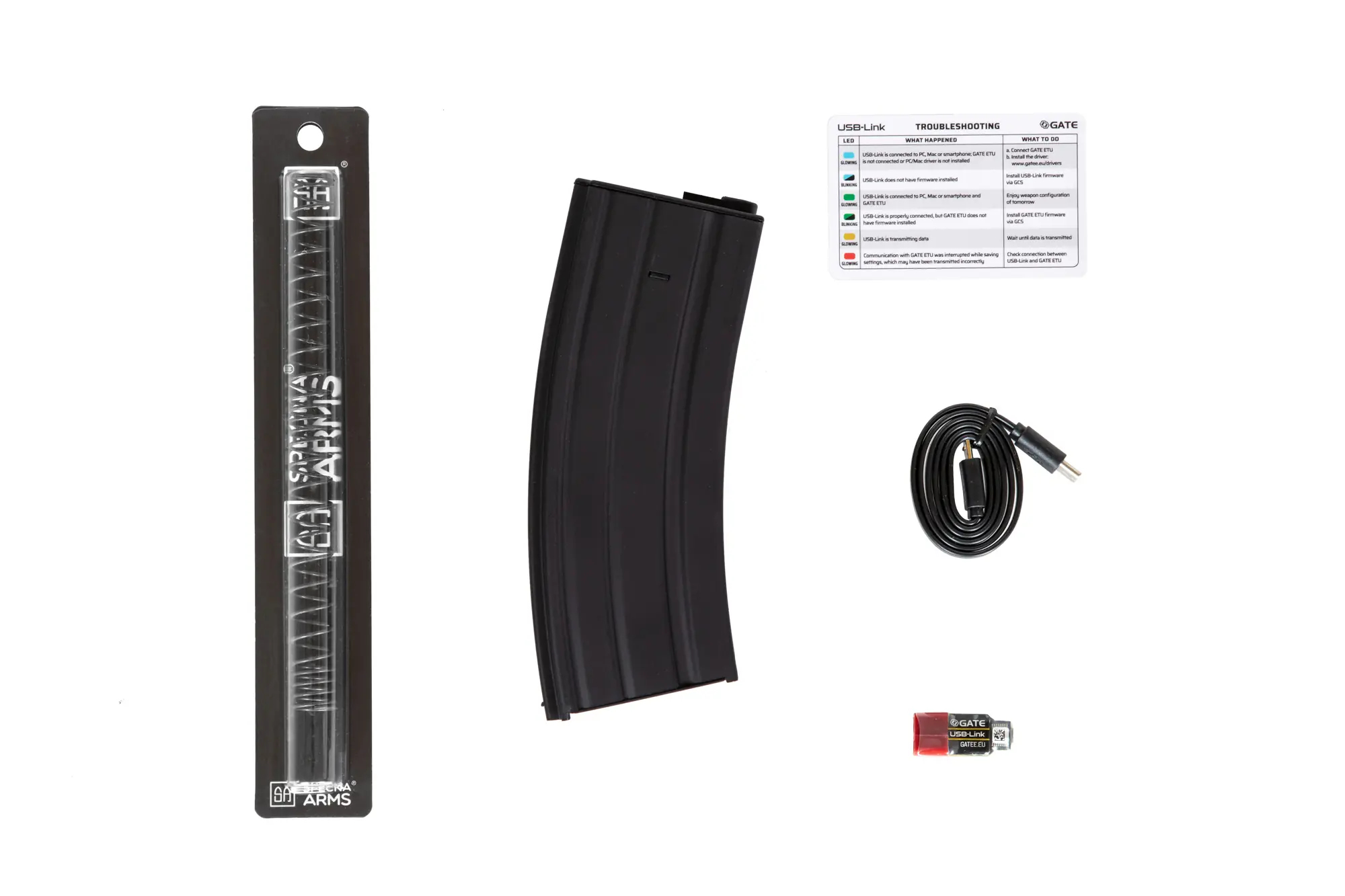 W zestawie z repliką znajduje się również stalowy magazynek typu hi-cap, mieszczący 300 kulek.