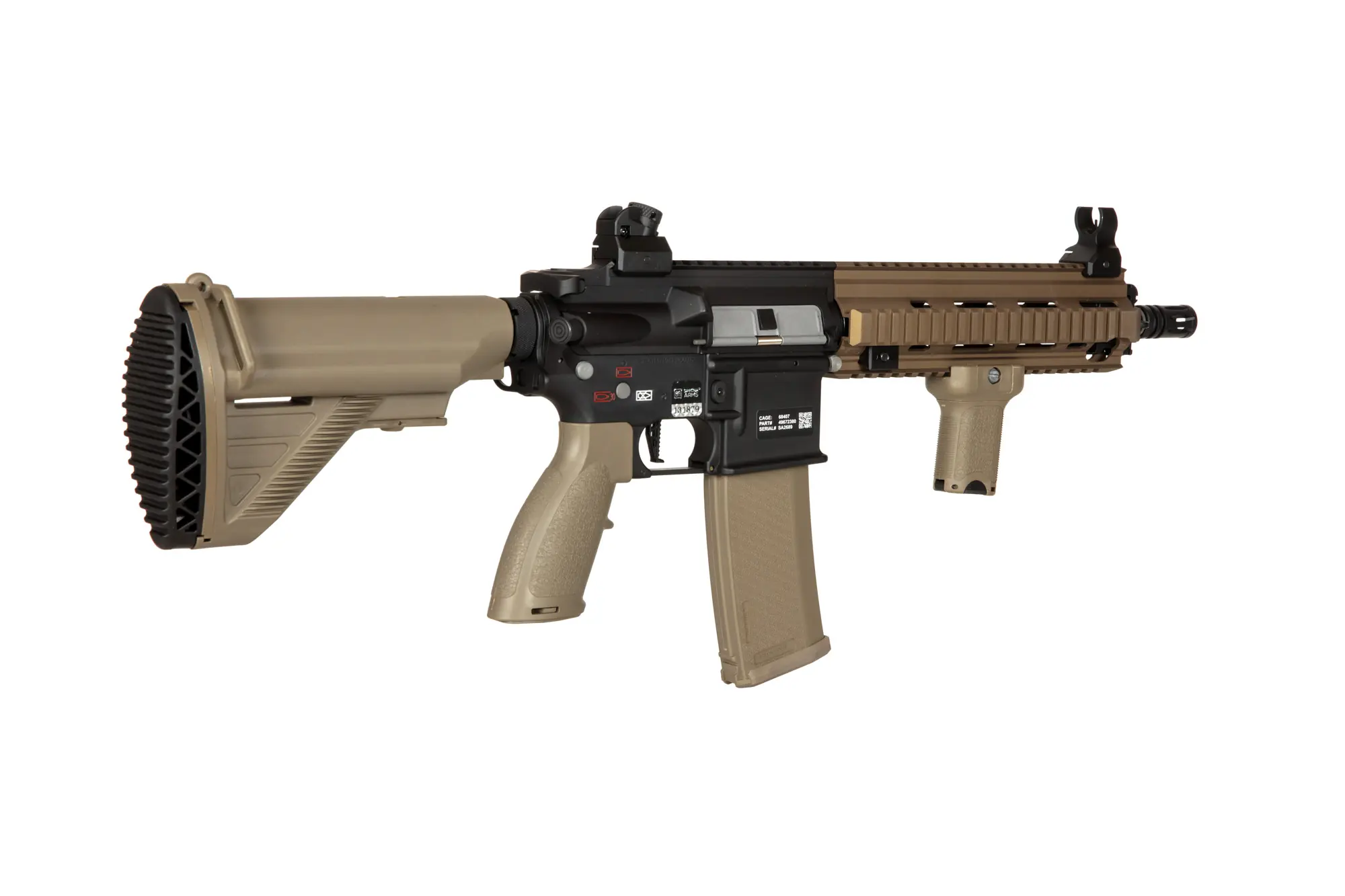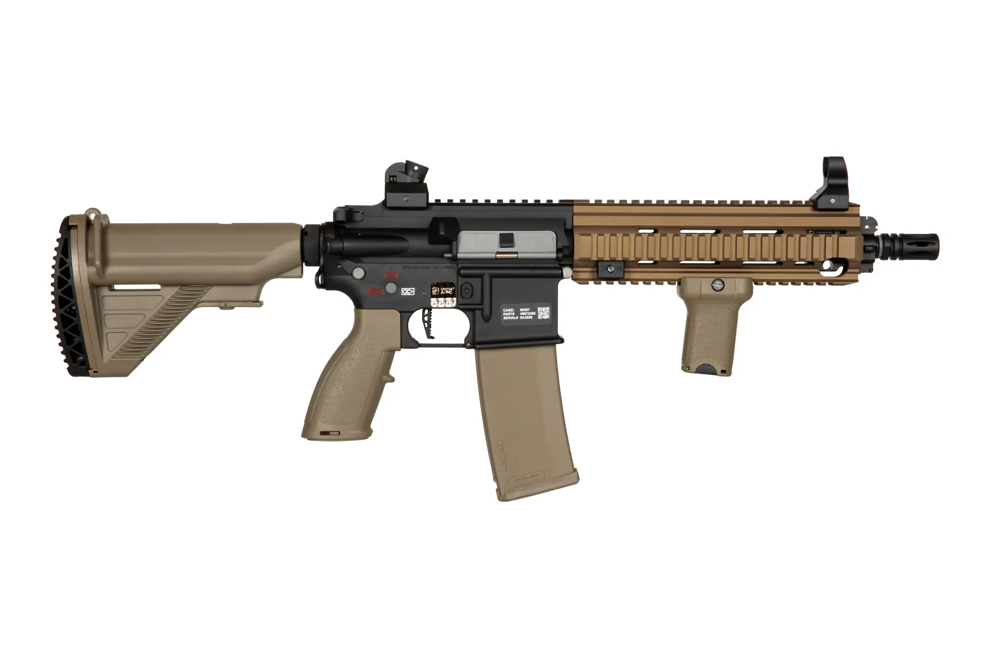 Każdy element repliki został wykonany oraz spasowany z dbałością o każdy szczegół, dodatkowo do wykończenia korpusu użyto powłoki Nano Coating zapobiegającej zarysowaniom. Na korpusie umieszczono głęboko grawerowane oznaczenia Specna Arms oraz indywidualny numer seryjny potwierdzony dodatkowym hologramem.
