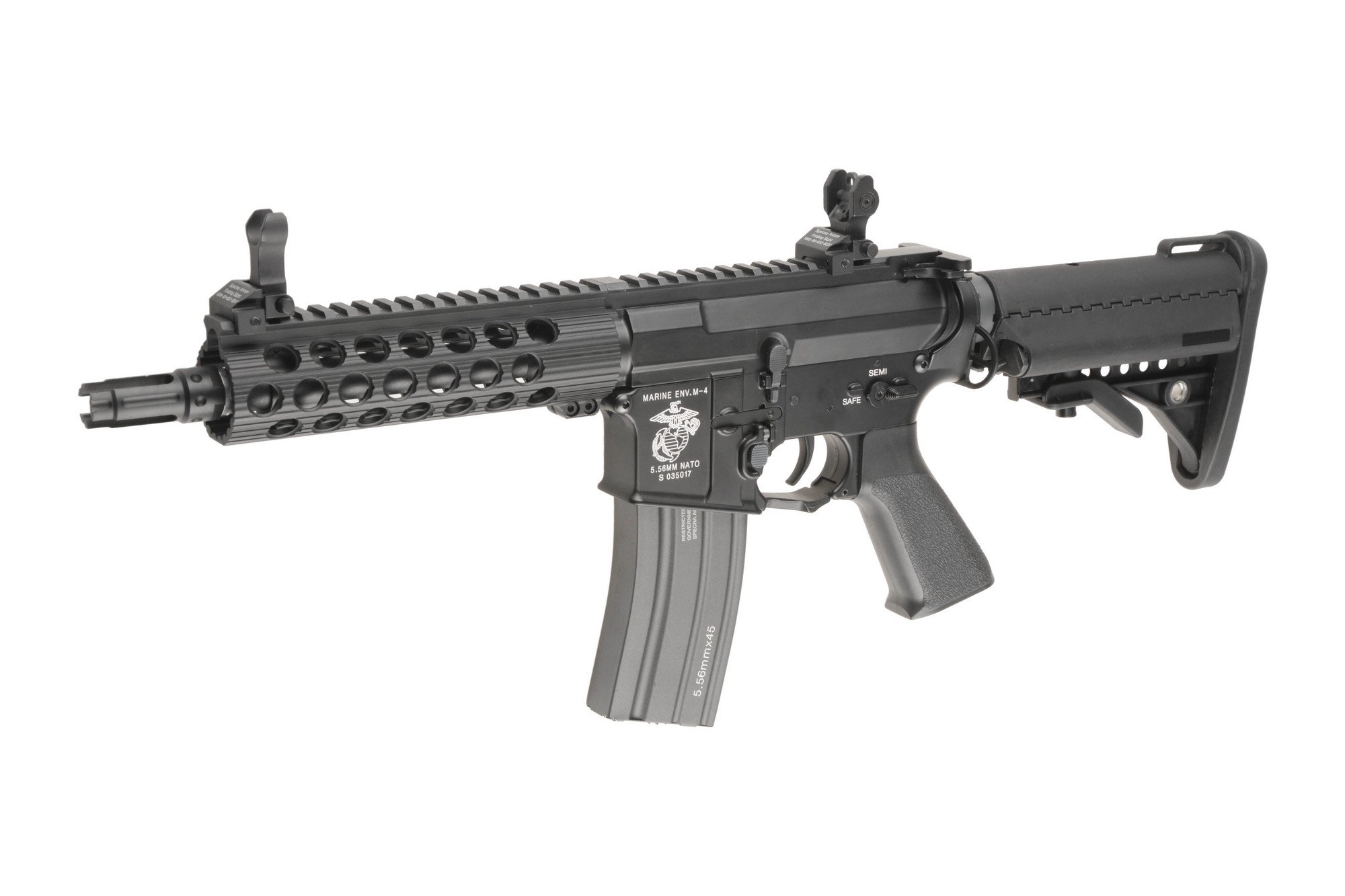 Replika wyposażona została w grzbietową szynę RIS 22 mm, zespół frontowych szyn RIS typu Free Float oraz regulowaną kolbę. Na górnej szynie RIS założone zostały metalowe przyrządy celownicze typu flip-up, mogą one jednak swobodnie być zastąpione przez dowolne optoelektroniczne urządzenie celownicze. Dzięki rozsuwanej kolbie zakończonej stopką o antypoślizgowej fakturze, możliwe jest dostosowanie długości repliki do budowy oraz preferencji strzelca. Standardowy tłumik płomienia osadzony został na 14-milimetrowym lewoskrętnym gwincie, co umożliwia przyłączenie w jego miejsce tłumika dźwięku. Co więcej w zestawie znajduje się tłumik dźwięku z montażem QD idealnie dopasowany do frontu repliki.