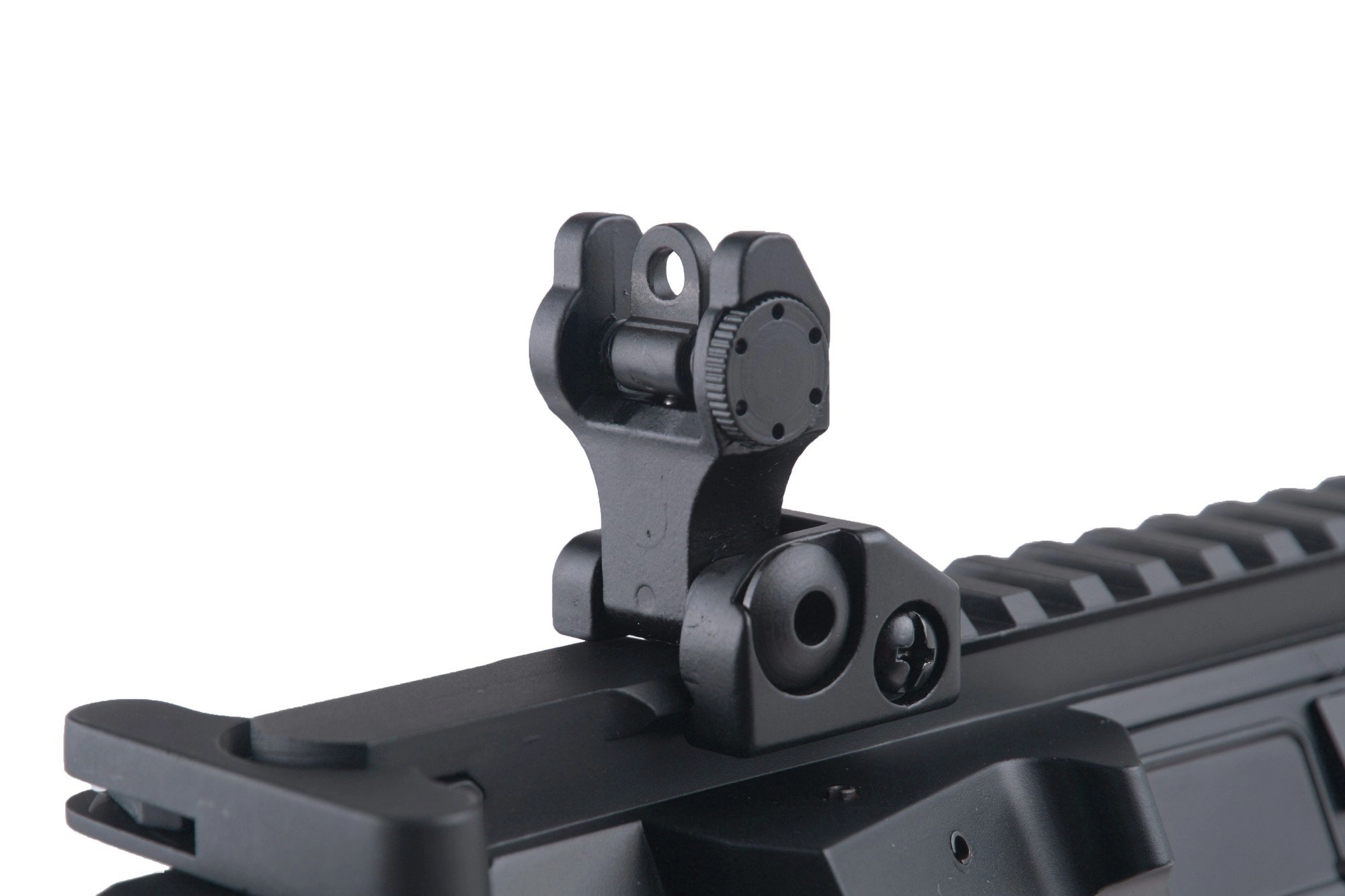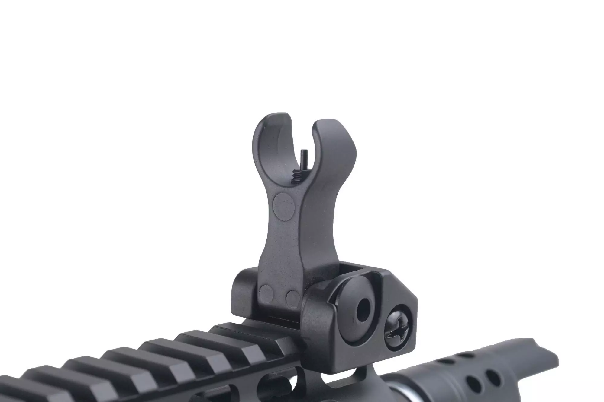 Model ten posiada modularny chwyt przedni typu KeyMod o długości 9″. Do zespołu KeyMod przyłączyć można dedykowane segmenty np. szyn RIS (KeyMod nuts) w dowolnej pozycji oraz dowolnej konfiguracji, dzięki rozmieszczonym wokół chwytu otworom (KeyMod slots).