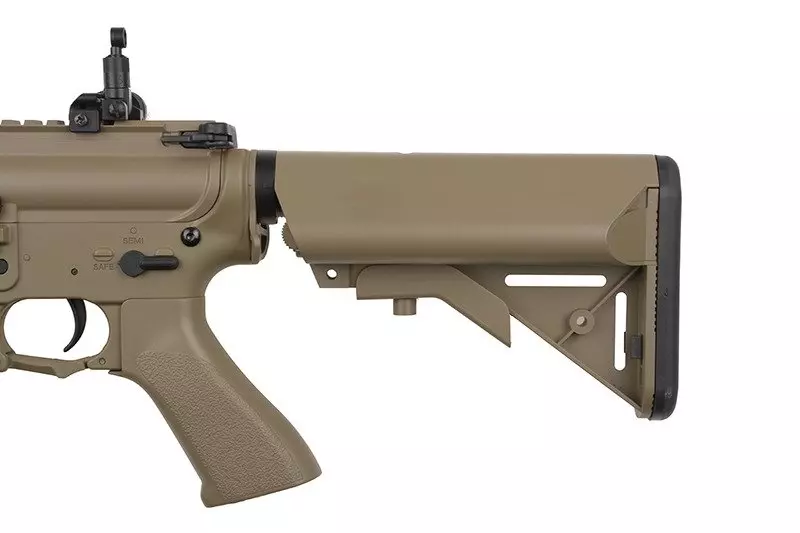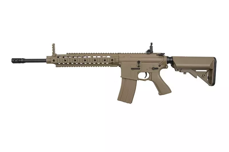 Dostęp do suwaka regulacji systemu hop-up uzyskujemy standardowo, po odciągnięciu rączki przeładowania. Z lewej strony korpusu znajduje się selektor trybu ognia/bezpiecznik. Sercem repliki jest solidny, w pełni metalowy gearbox typu v.2, wyposażony w komplet stalowych kół zębatych, łożyskowaną prowadnicę sprężyny i 7mm łożyska, dzięki któremu replika osiąga prędkość wylotową rzędu ~400 FPS prosto z pudełka.