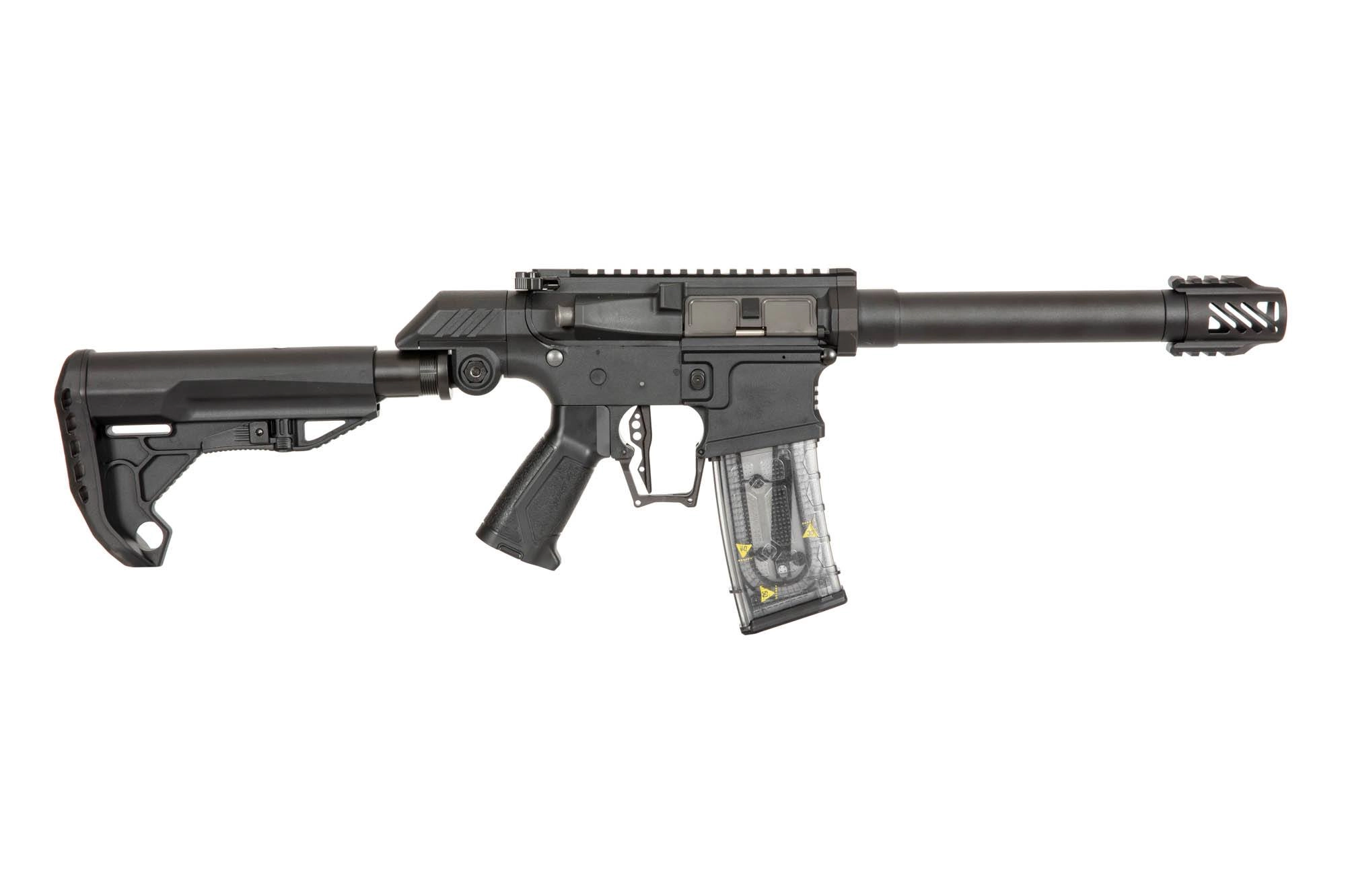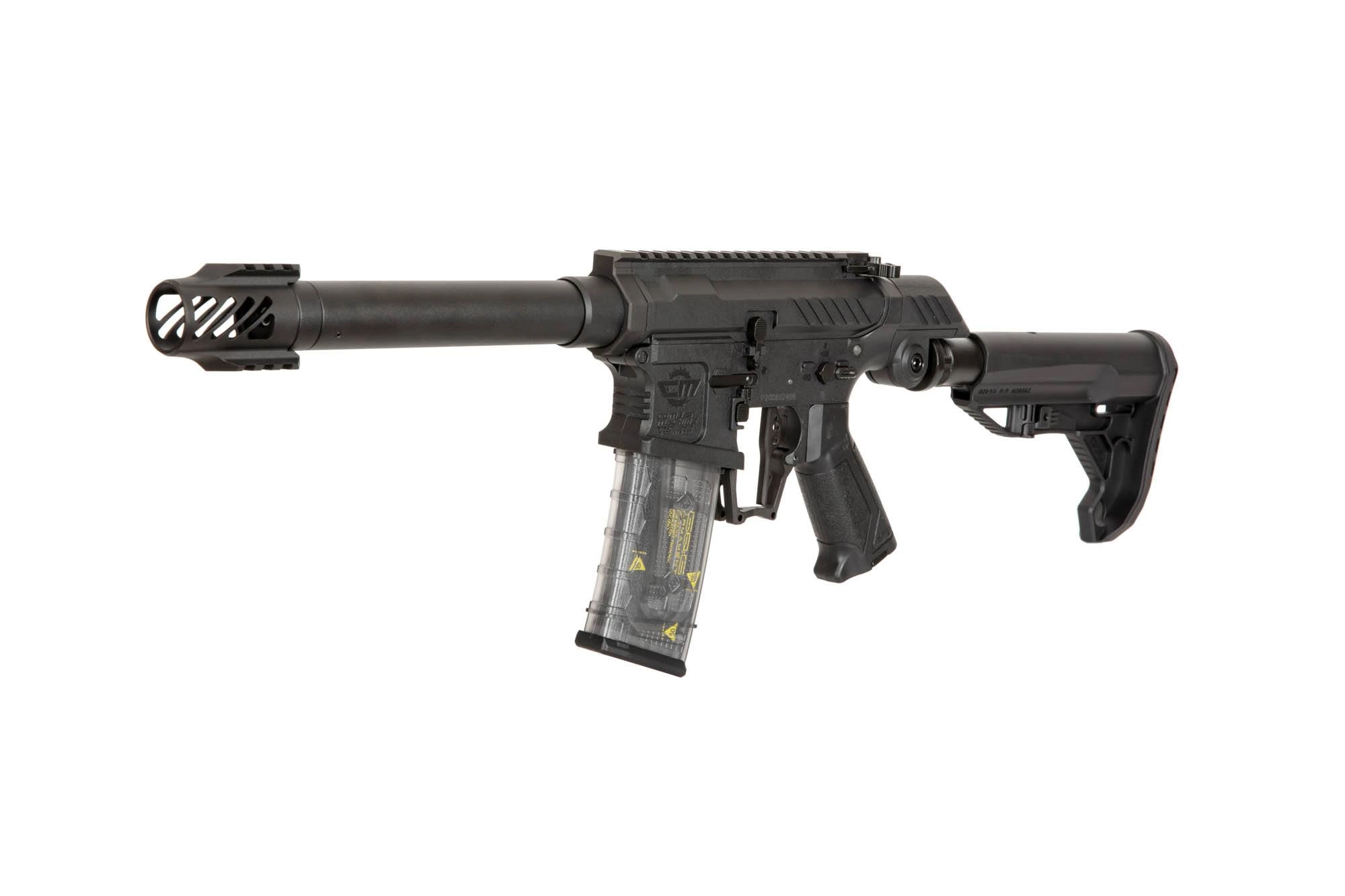 Przede wszystkim replika została maksymalnie odchudzona, aby zapewnić jak największą mobilność podczas gry. Polimerowy korpus obniża wagę, zrezygnowano tu całkowicie z frontu / chwytu przedniego. Prowadnica kolby posiada regulację w pionie, co pozwoli na wygodne operowanie i składanie się do strzału w masce ochronnej. Język spustowy oraz osłona spustu są powiększone tak, aby zmieścić nawet 3 palce i jeszcze szybciej prowadzić ogień w trybie single fire.
