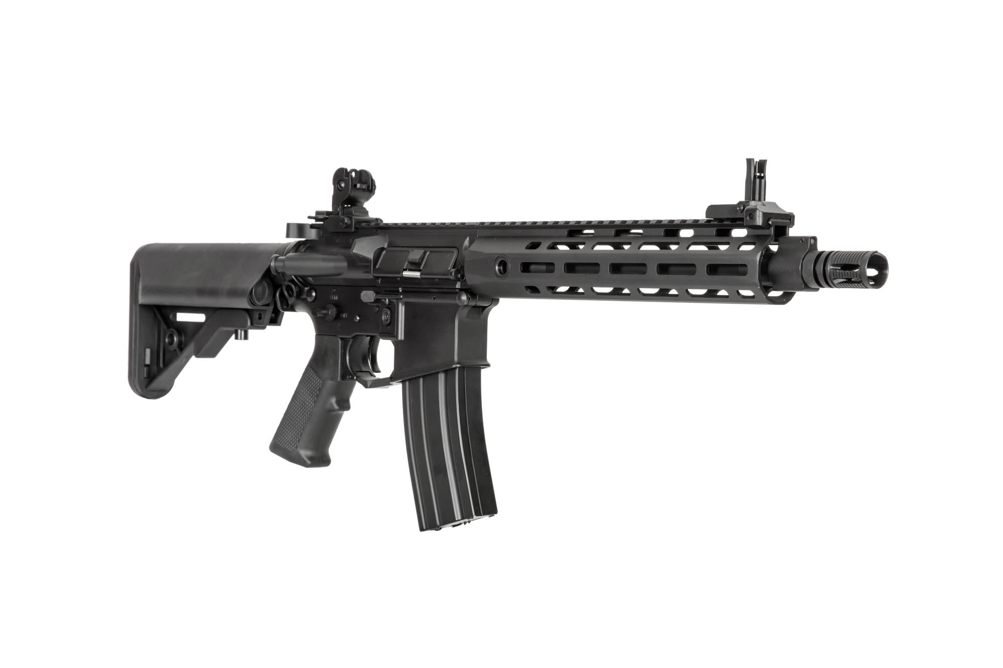 Działający bolt-catch ułatwia regulację systemu hop-up, a szyny RIS / Picatinny oraz łoże w standardzie M-LOK umożliwiają doposażenie karabinka w rozmaite akcesoria dodatkowe, takie jak optyka, oświetlenie taktyczne. Do repliki dołączono stalowy magazynek typu hi-cap o pojemności 300 kulek.