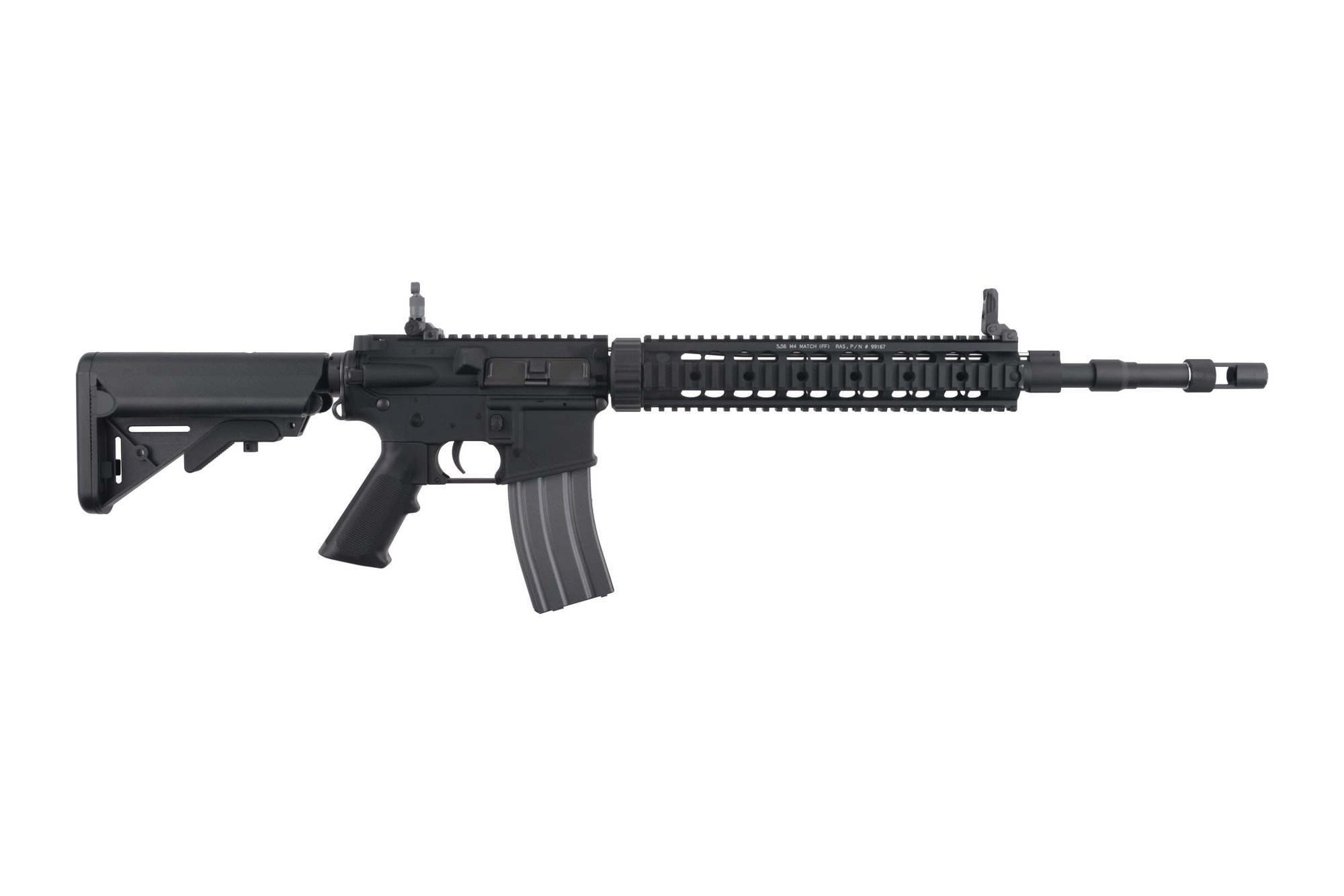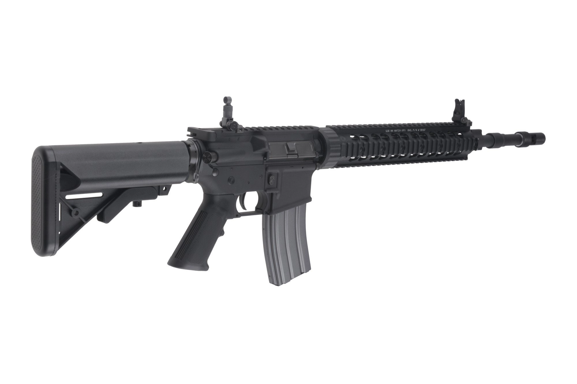Replikę wyposażono w grzbietową szynę montażową RIS 22mm oraz modułową szynę przednią RIS. Dzięki nim mamy możliwość zaopatrzenia karabinka w całą gamę akcesoriów dodatkowych, począwszy od optyki, przez chwyty i oświetlenie taktyczne, aż po laserowe wskaźniki celu. W zestawie znajdziemy również 3 okładziny na szyny frontowe.