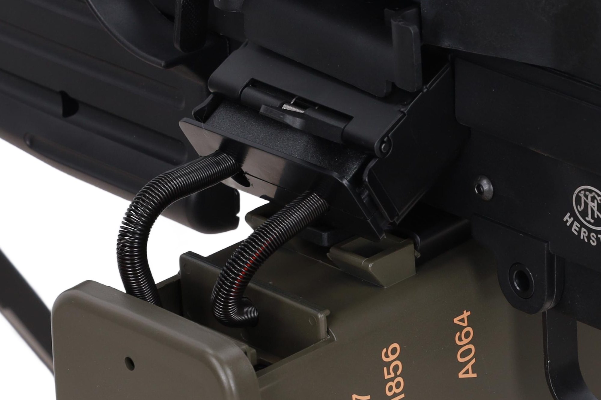 Replikę napędza pełnowymiarowy, metalowy i pancerny gearbox typu M249, który charakteryzuje się wysoką wytrzymałością oraz dobrą kulturą pracy w stocku. Mechanizm jest przygotowany do dalszych tuningów i gotowy na obciążenia związane z prowadzeniem ognia zaporowego. Wewnątrz zamontowano takie podzespoły jak: