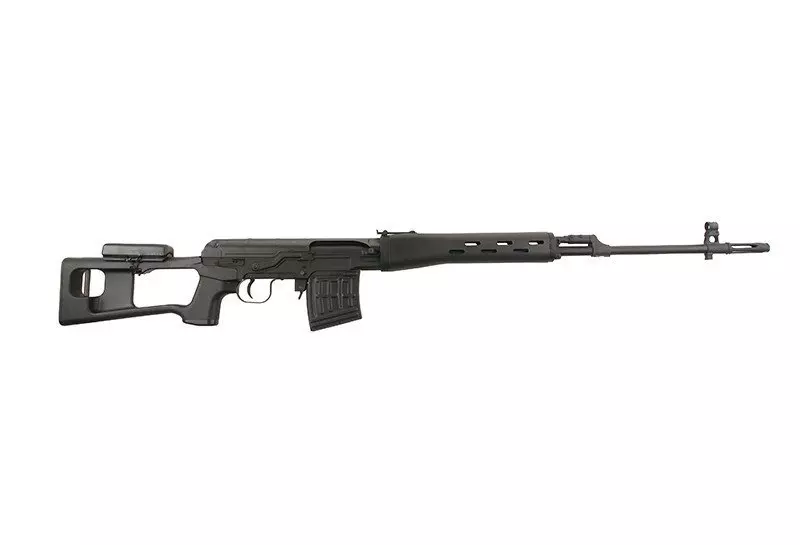Karabin posiada zestaw regulowanych, mechanicznych przyrządów celowniczych, podobnych jak te w replikach typu AK. Jest to replika karabinu snajperskiego, więc od razu po wyjęciu z pudełka aż prosi się o dokupienie i montaż optyki. Umożliwi to standardowa boczna szyna montażowa, do której możemy dołączyć dedykowane lunety (choćby klasyczną PSO-1) bądź uniwersalny montaż zaopatrzony w szynę RIS 22mm, a na nim dowolny model optyki jaki tylko zapragniemy.