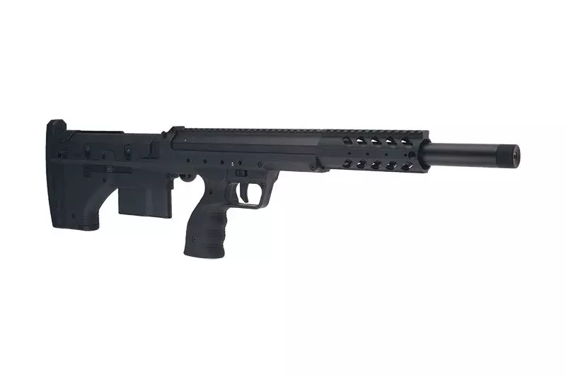 W pełni licencjonowana replika karabinu snajperskiego Desert Tech w systemie Bullpup produkcji firmy Silverback Airsoft wykonana została z najwyższej jakości materiałów: stali, aluminium 6061, poliwęglanowego tworzywa sztucznego, oraz wzmacnianego włóknem nylonowym tworzywa sztucznego.