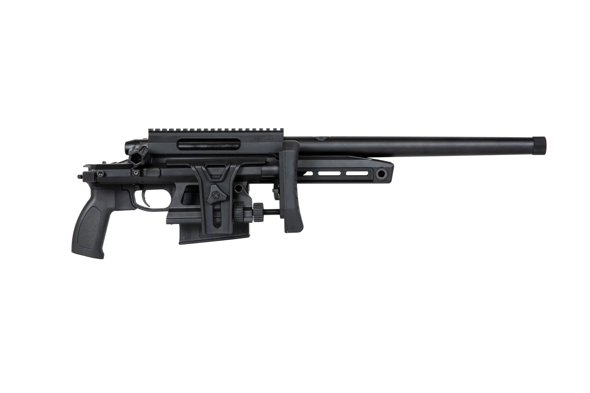 Marka Silverback Airsoft dała się poznać jako prawdziwi specjaliści od projektowania karabinów snajperskich ASG za sprawą tak udanych konstrukcji jak seria replik Desert Tech SRS czy HTI .50 BMG. TAC-41 jest kolejną propozycją dla airsoftowych strzelców wyborowych, to karabin w układzie klasycznym napędzany sprężynowo dzięki mechanizmowi 4-taktowemu (bolt-action). Łoże wraz ze składaną kolbą wykonano aluminium 6000 i nylonowego tworzywa wzmocnionego włóknem szklanym, a spore możliwości regulacji oraz kompatybilność z systemem montażowym M-LOK pozwalają na skonfigurowanie karabinu pod styl gry.