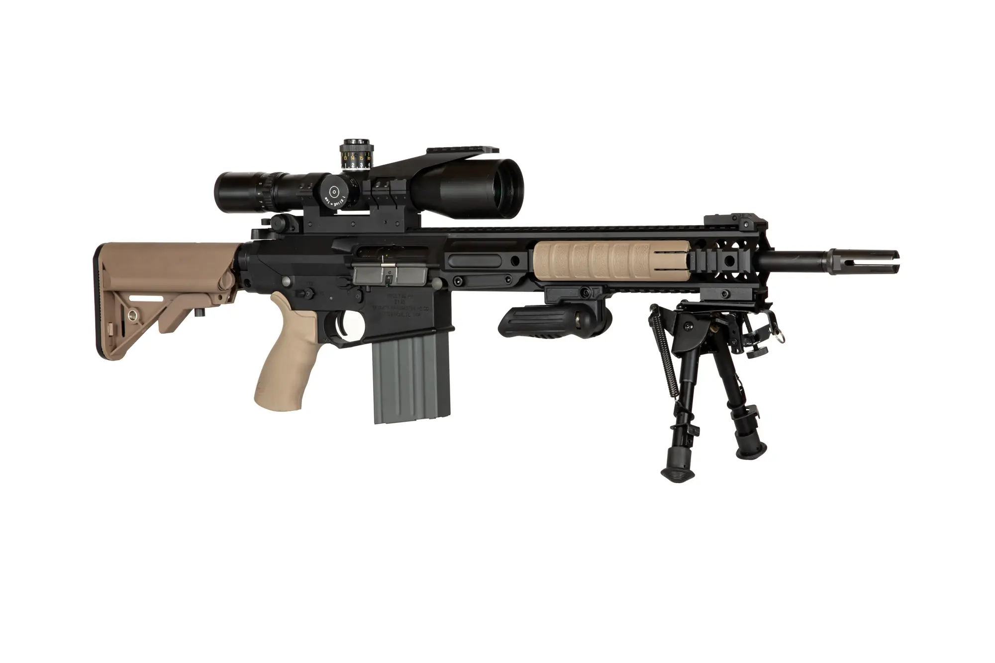 – bazę stanowi replika G&G SR25 ETU, która strzela tylko i wyłącznie ogniem pojedynczym (wersja z licencją Knight’s Armament),