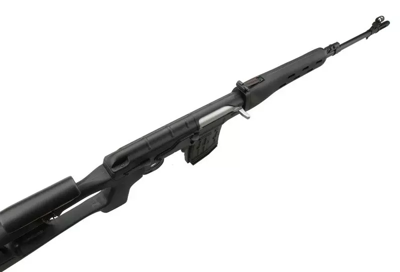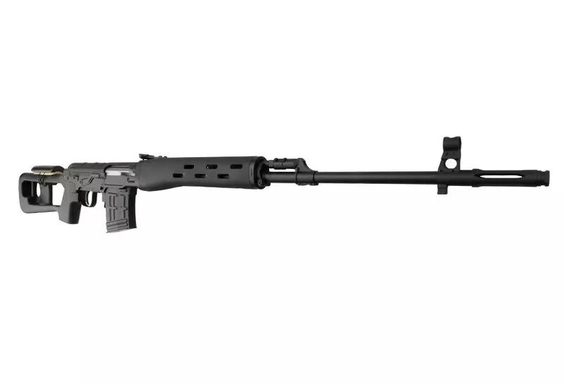 Replika rosyjskiego karabinu wyborowego w sprężynowej wersji firmy GFC Guns wykonana została z metalu oraz wysokiej jakości tworzywa sztucznego, wzorem konstrukcji z lat dziewięćdziesiątych. Z metalu wykonano korpus repliki wraz z zespołem lufy oraz przyrządy celownicze, z tworzywa sztucznego natomiast wykonana została kolba oraz chwyt przedni. Na kolbie umieszczona została poduszka podpoliczkowa, tzw. baka, ułatwiająca precyzyjne oddawanie strzałów i zwiększająca komfort użytkowania.