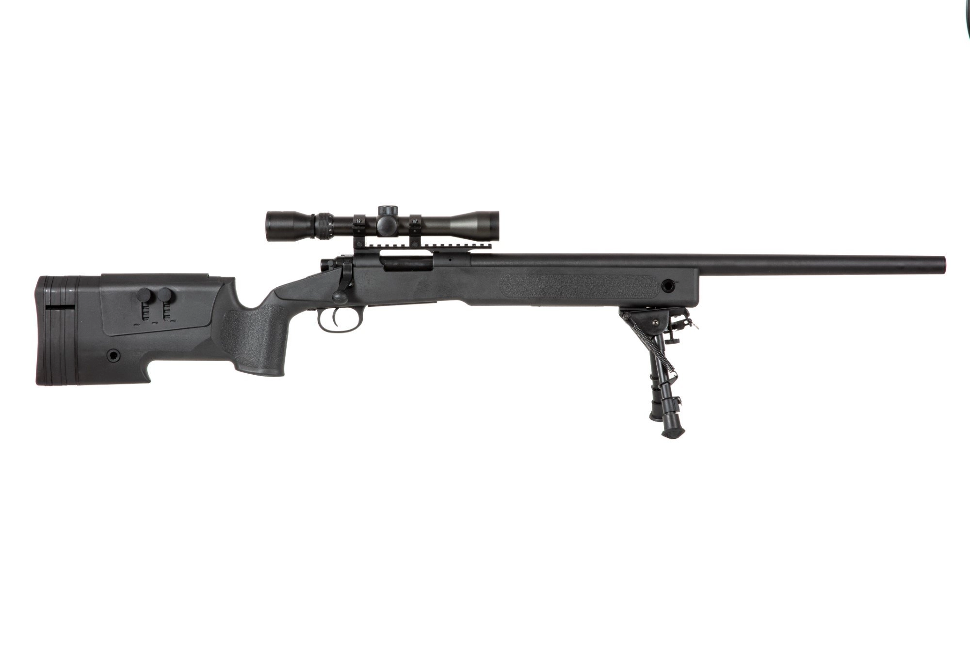 Replika karabinu wyborowego SA-S02 CORE™ z lunetą i dwójnogiem – czarna