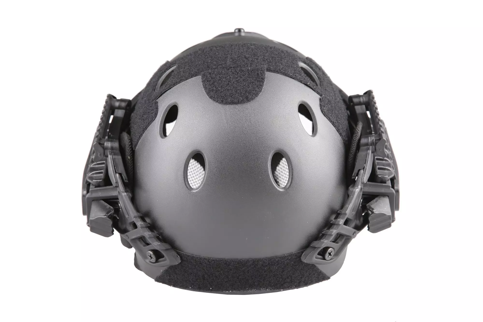 Z zewnątrz kask posiada zintegrowany montaż do noktowizora.. Z obu stron znajdziemy uniwersalne szyny RIS w standardzie 22mm umożliwiające montaż dowolnych akcesoriów jak na przykład oświetlenie.  Dużą część powierzchni skorupy z boku i z tyłu zajmują rzepy, które można wykorzystać do montażu naszywek, elementów identyfikacyjnych czy znaczników światła widzialnego lub podczerwonego.